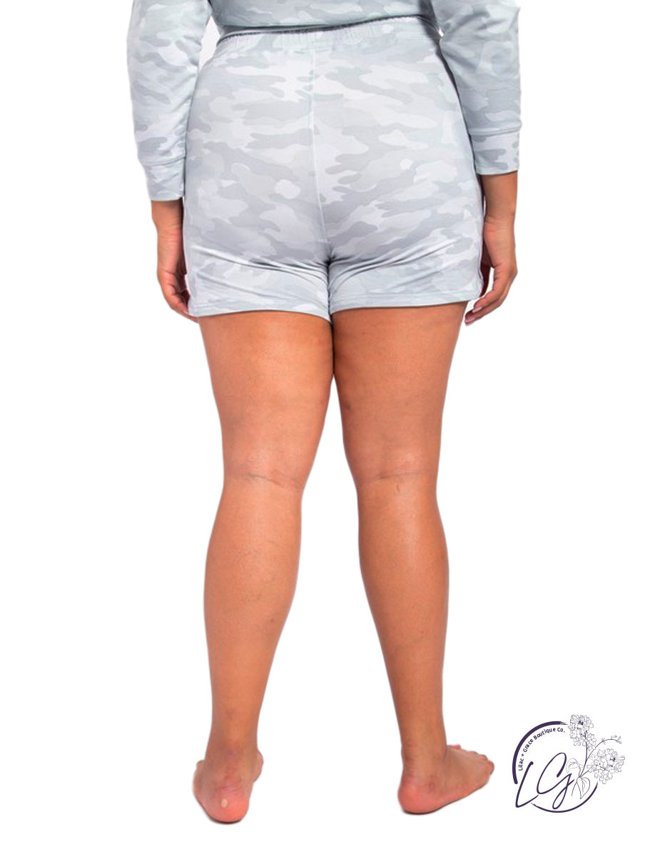 Curvy Too Fine Camo Drawstring Shorts