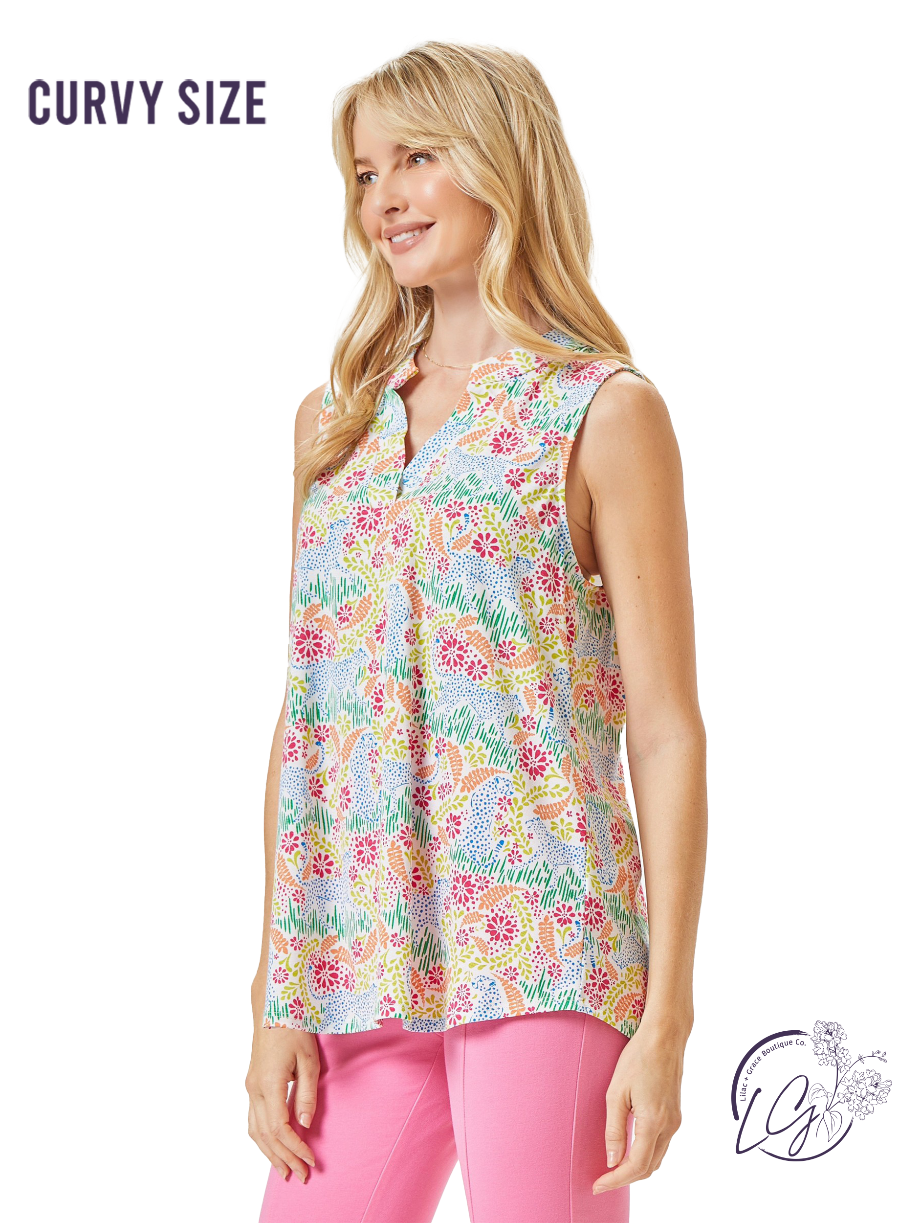 Effortlessly chic and versatile, our Ivory Lizzy tank top will become a staple in your wardrobe. The relaxed, flowy fit and fun prints make it perfect for any occasion. The wrinkle-free fabric ensures you always look put-together. With a non-sheer and stretchy design, it's both comfortable and stylish.