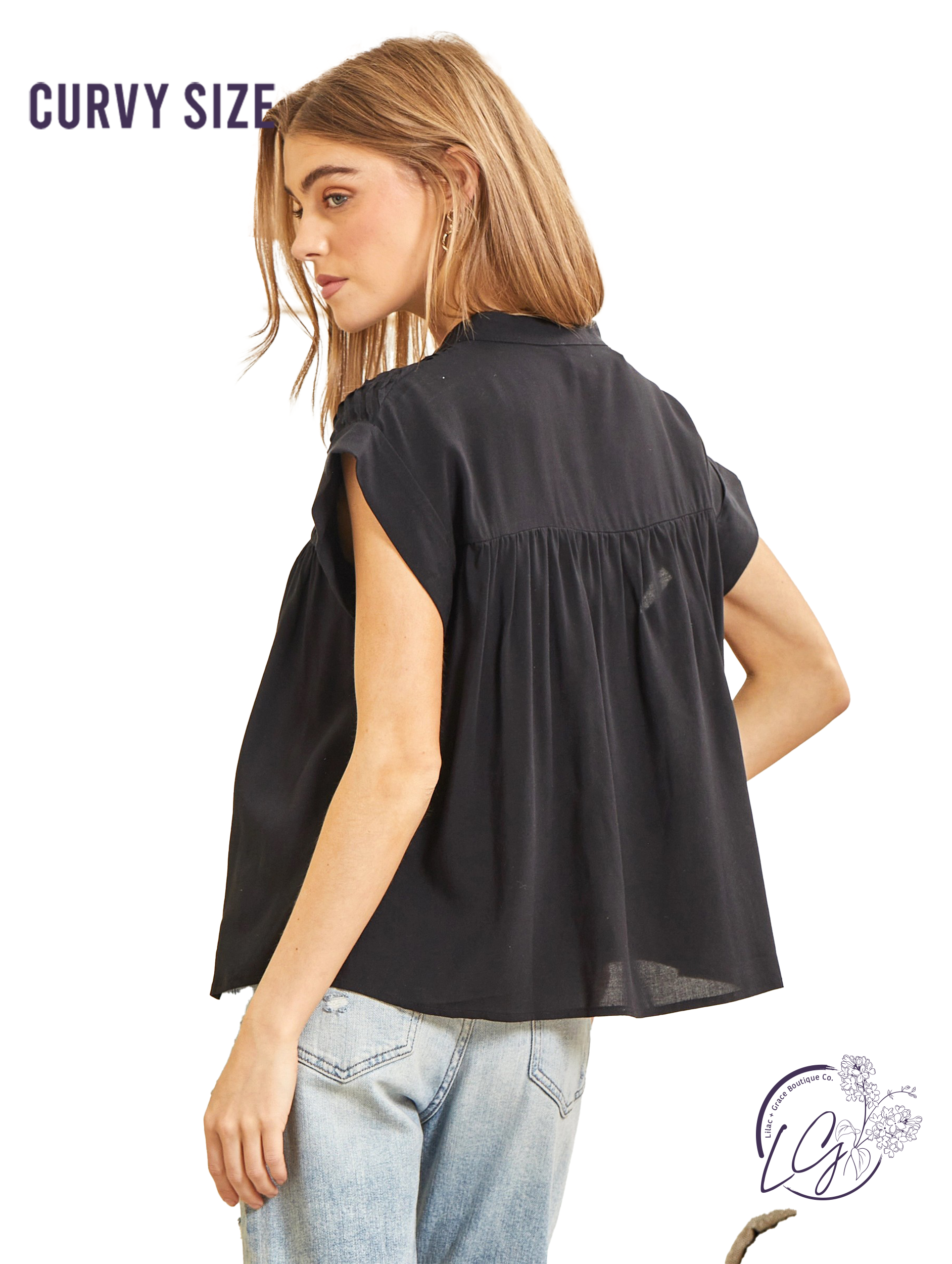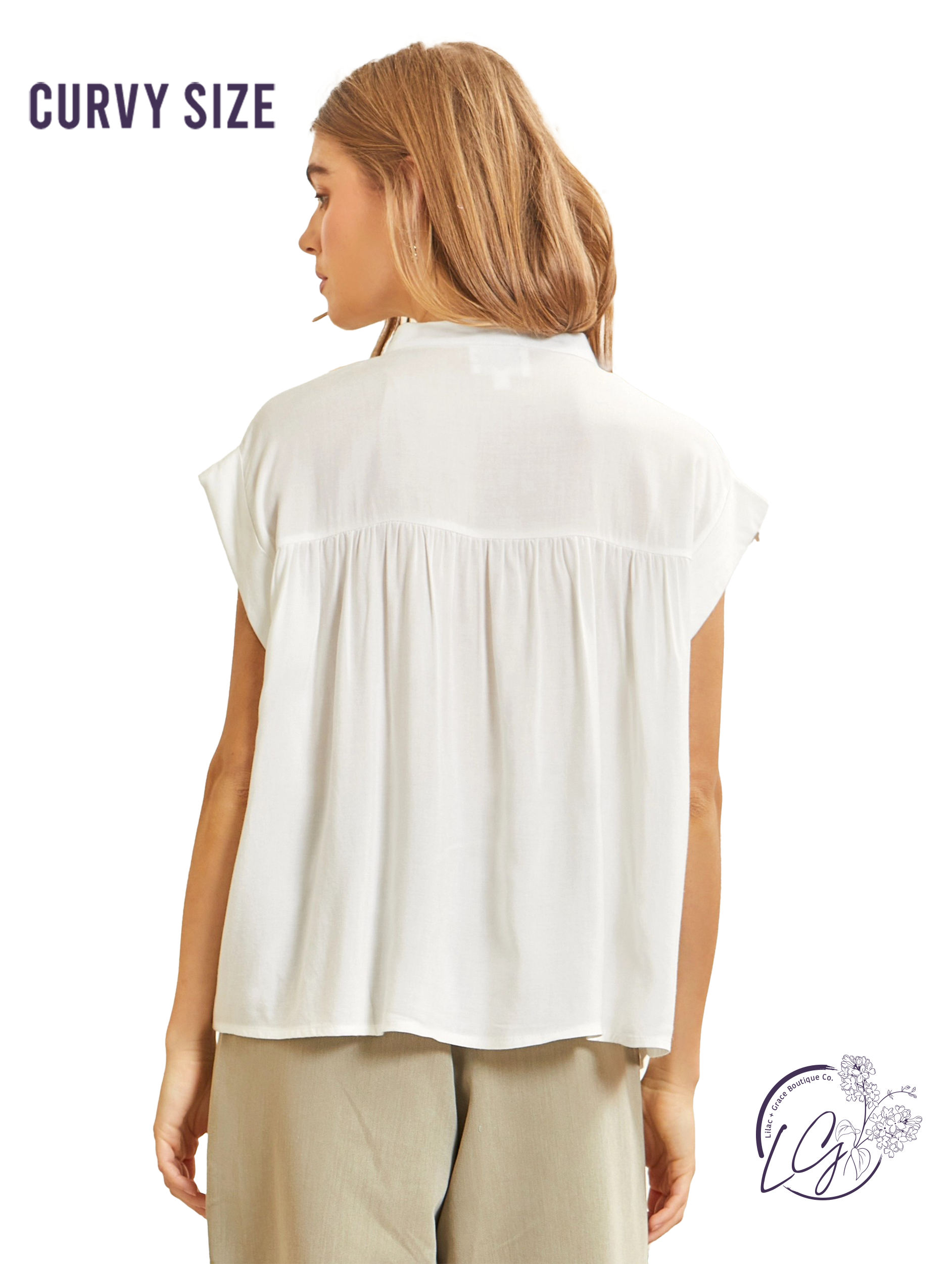 Indulge in effortless style with our Love This Vibe Pleated Top! This easy to wear top features a button down front, pleated detailing, and cap sleeves for a chic and relaxed look. Made with non-sheer fabric, it's perfect for any occasion. Get ready to fall in love with your new go-to top!
