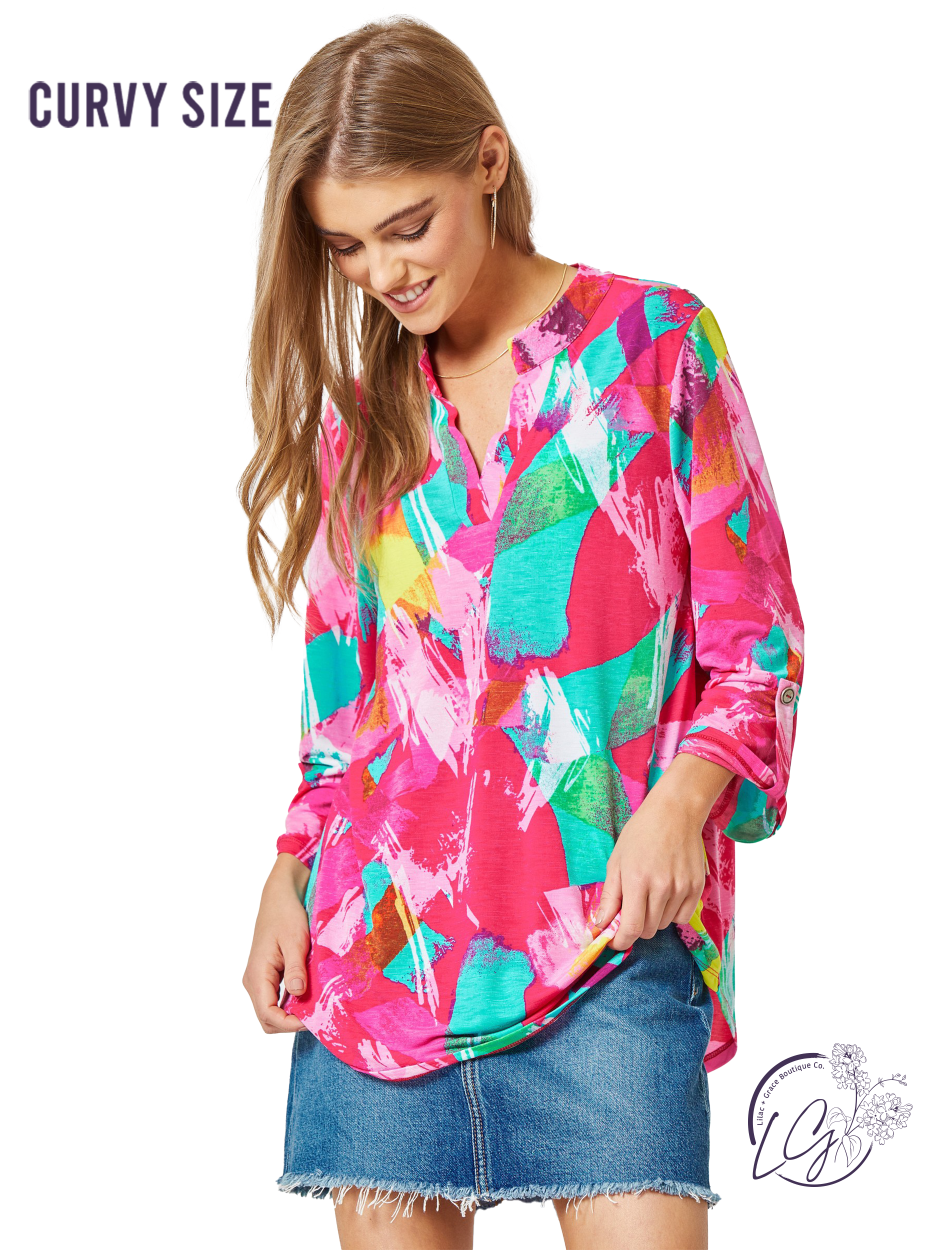 Curvy Multi Print Lizzy 3/4 Sleeve Top