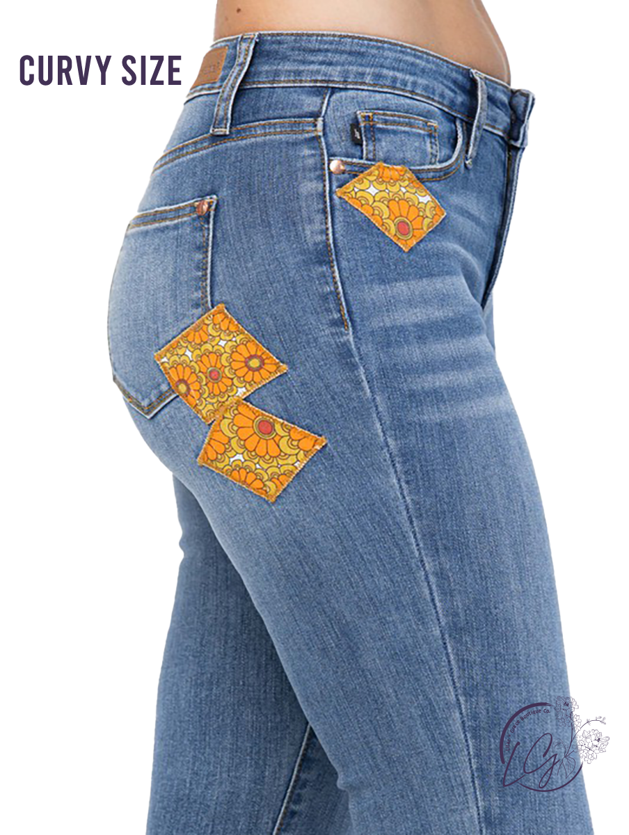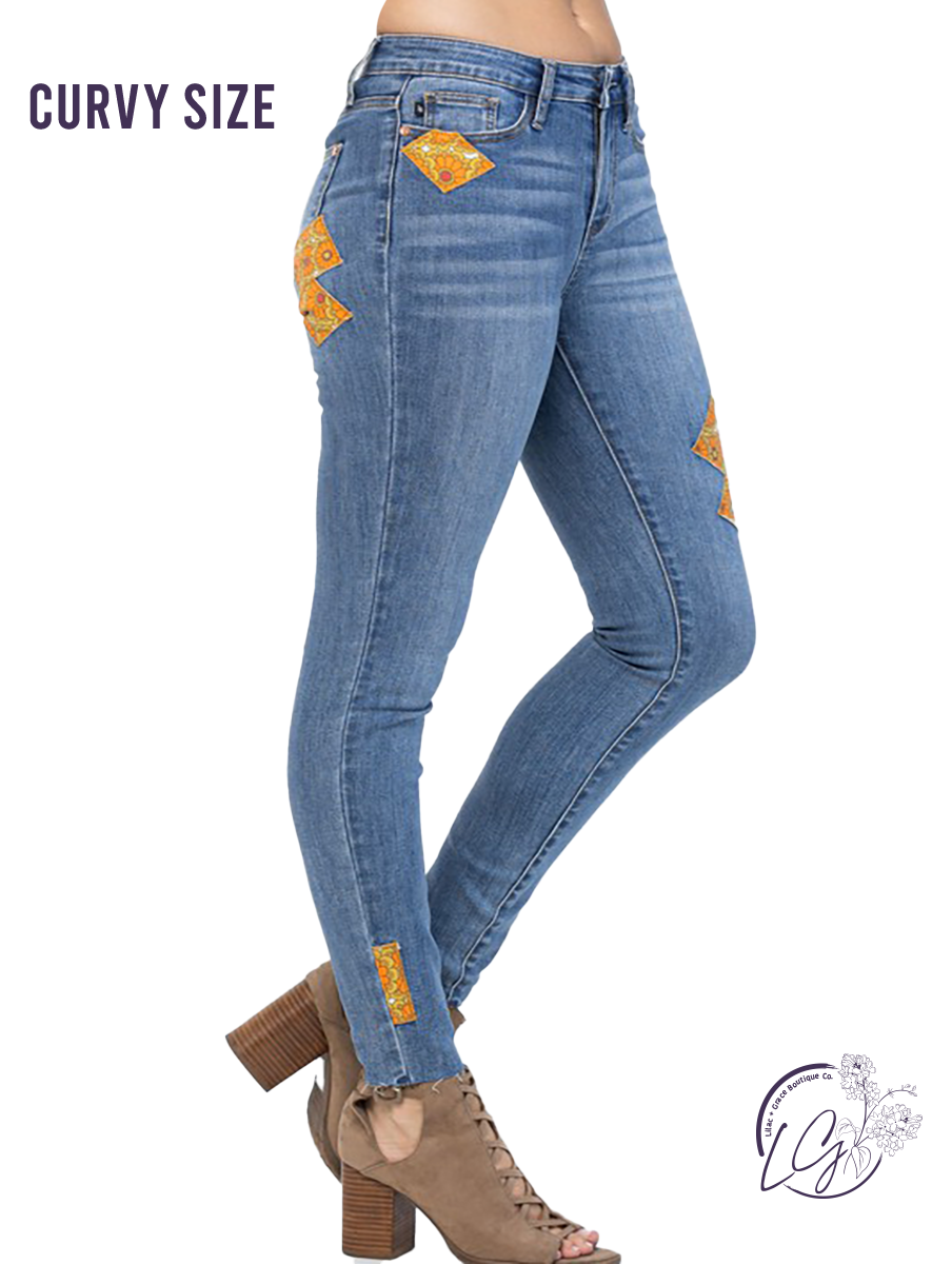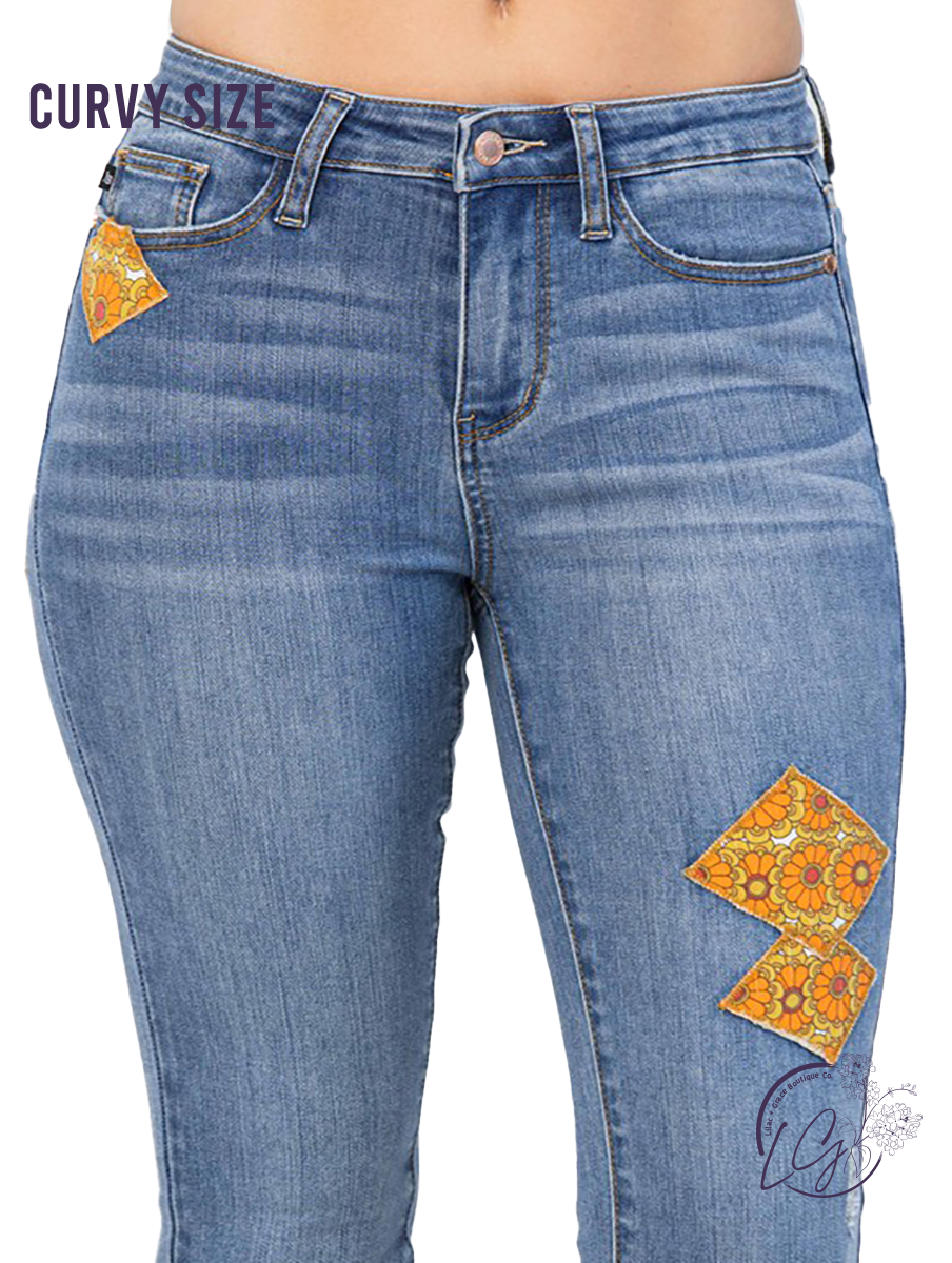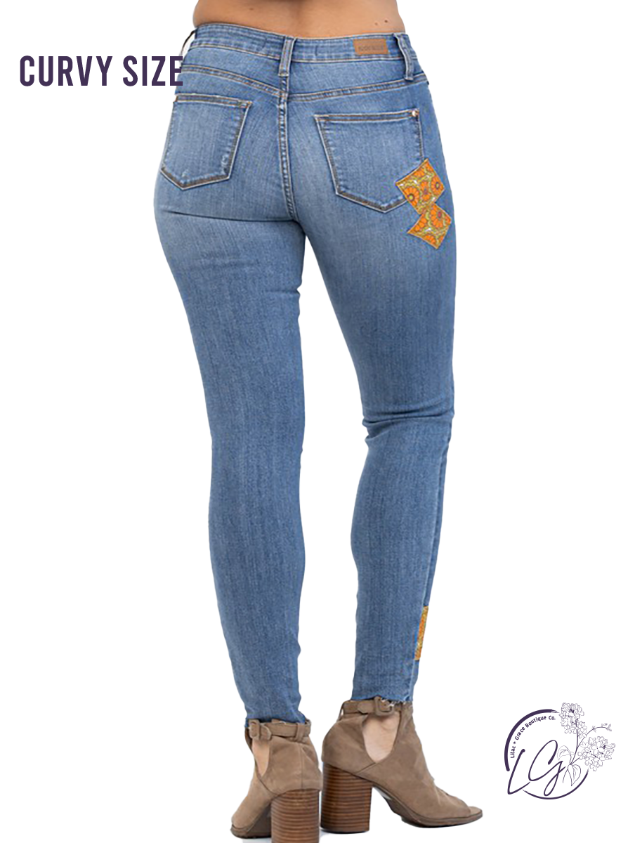 Curvy Sasha Mid-Rise 70's Patch Skinny by Judy Blue