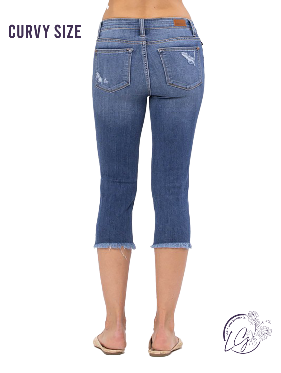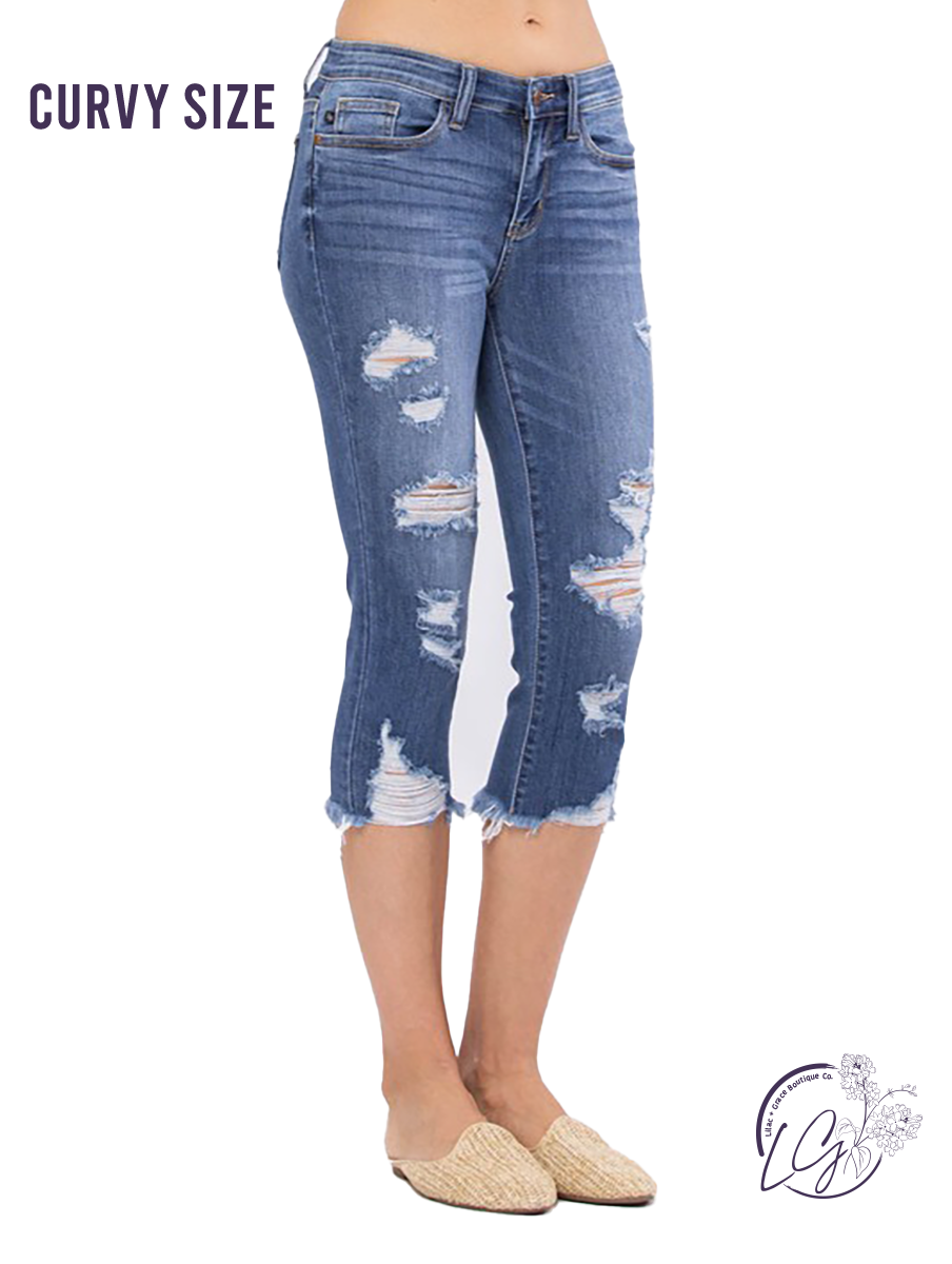 Curvy Sienna Mid-Rise Distressed Capri by Judy Blue