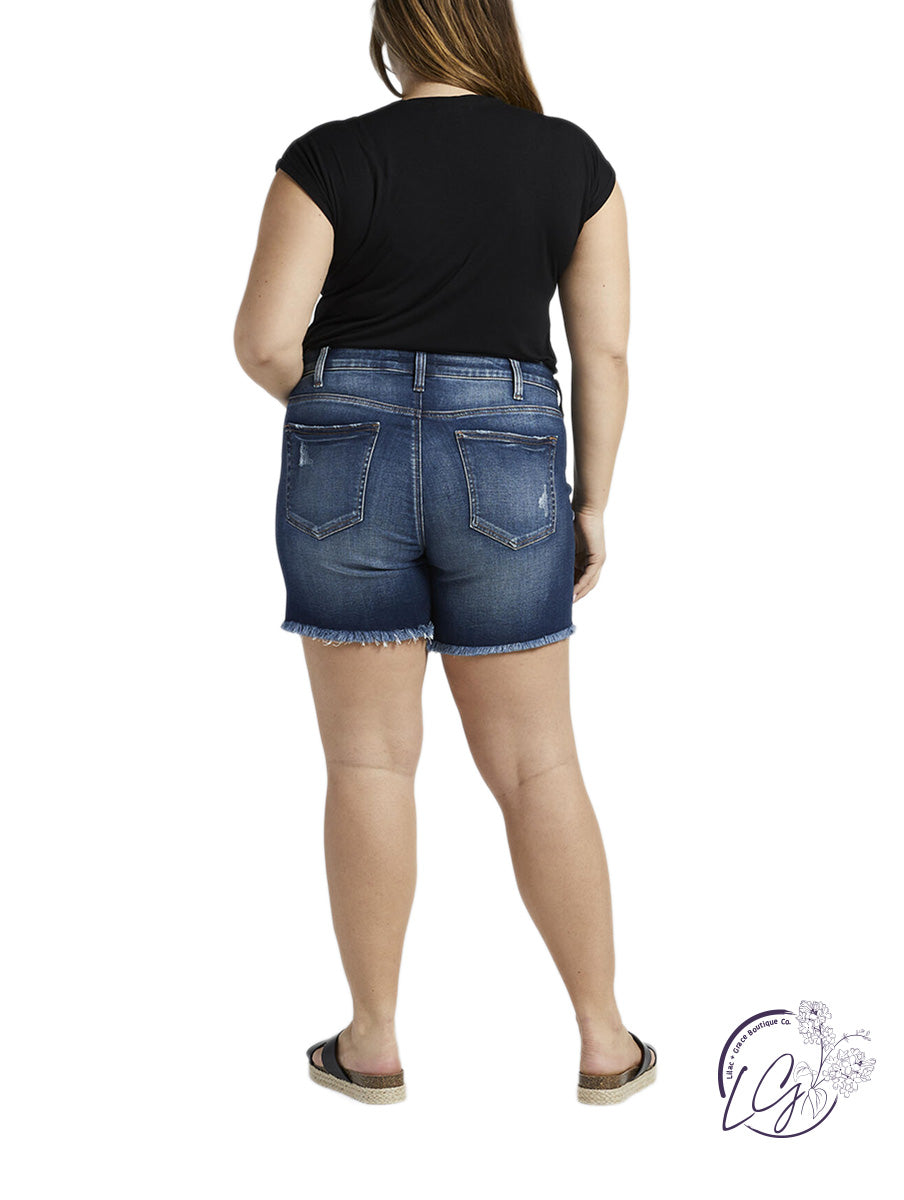 • Short with a distressed dark indigo eco wash that uses less water, chemicals and energy