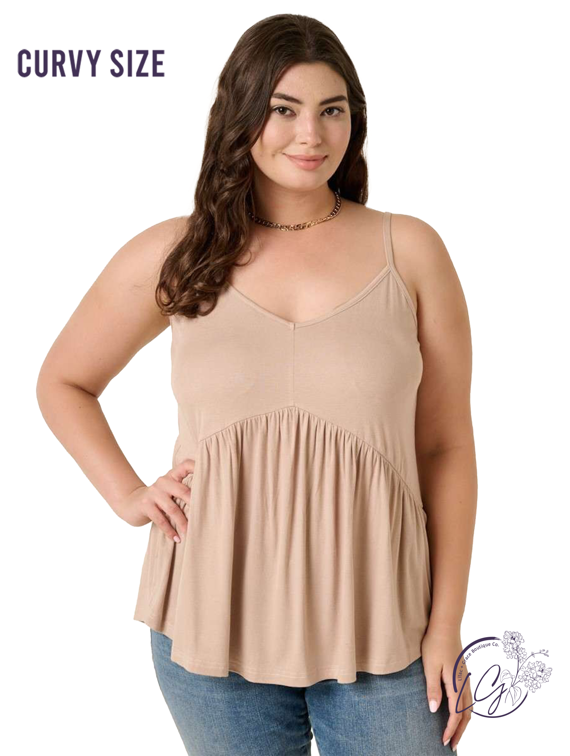 Get ready to amp up your wardrobe with our Curvy Time Melts Away Tank Top! This bold, v-neck top features a flattering babydoll waistline and a unique curved hemline, perfect for making a statement and taking risks. Say goodbye to boring and hello to adventure in this must-have top!