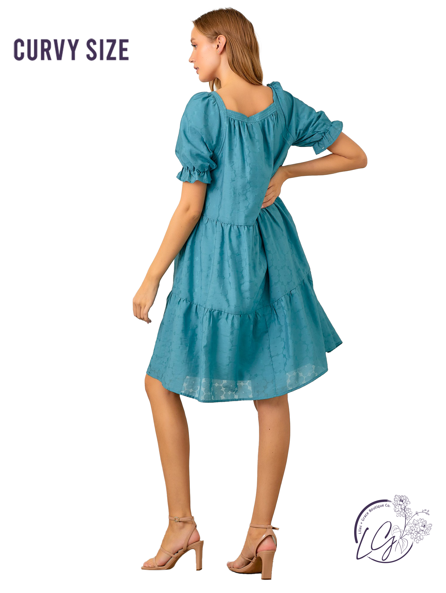 Soft and dreamy, this floral burnout tiered dress features a relaxed fit that flows with ease. The square neckline adds structure, while short sleeves keep the silhouette light and wearable. Subtle texture from the burnout floral design adds depth and elegance, making it a standout piece for both casual days and special occasions. Pair with flats or sandals for a look that’s equal parts laid-back and refined.