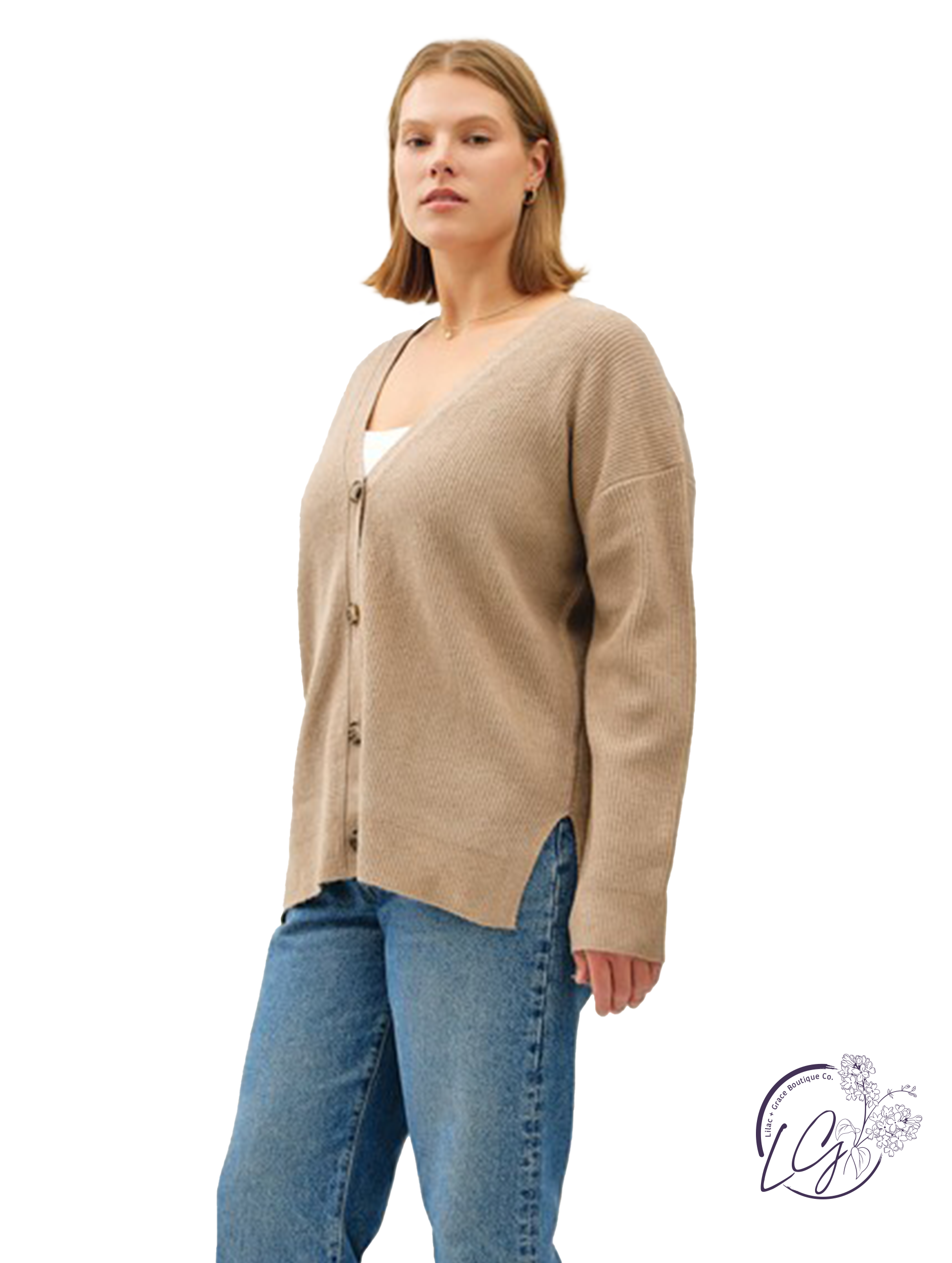The Curvy Twilight Ridge Sweater is a stylish and cozy knit, designed with a flattering v-neckline and a button-down front. Crafted from a soft ribbed fabric, this sweater hugs your curves beautifully while providing a relaxed, comfortable fit. The textured ridges add depth and dimension, evoking the calm and elegance of twilight. Perfect for layering or wearing solo, this versatile piece transitions seamlessly from casual daywear to chic evening looks. With its timeless design and cozy feel, the Curvy Twilight Ridge Sweater is sure to become a wardrobe favorite.
