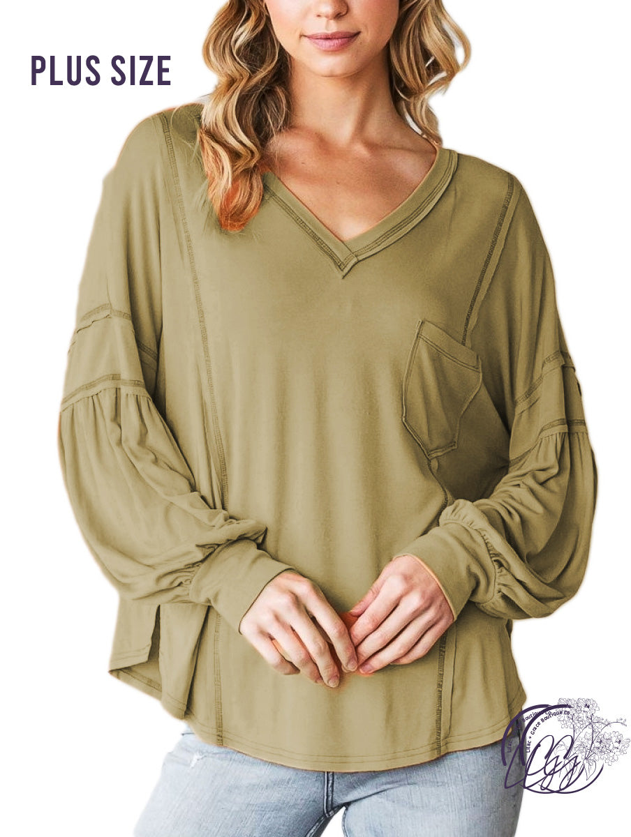 Curvy Heavenly Softness V-Neck Knit Long Sleeve