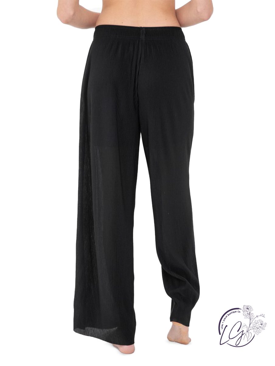 Delicate Drift Wide Leg Trousers exude an air of refined elegance, offering a perfect blend of comfort and sophistication. The micro pleats adorning these trousers create a subtle texture that catches the light with every movement, adding a touch of dynamic grace to your ensemble.