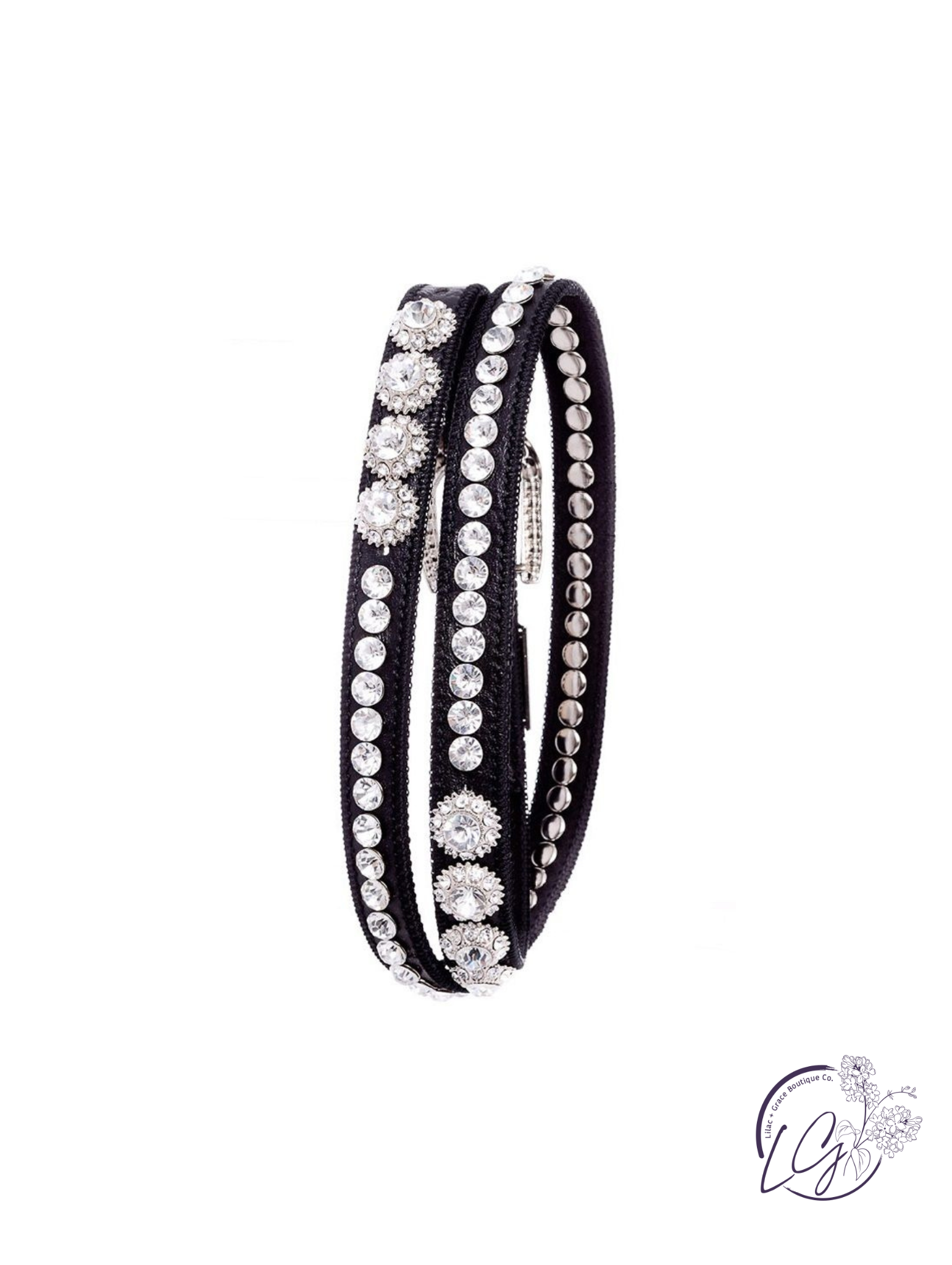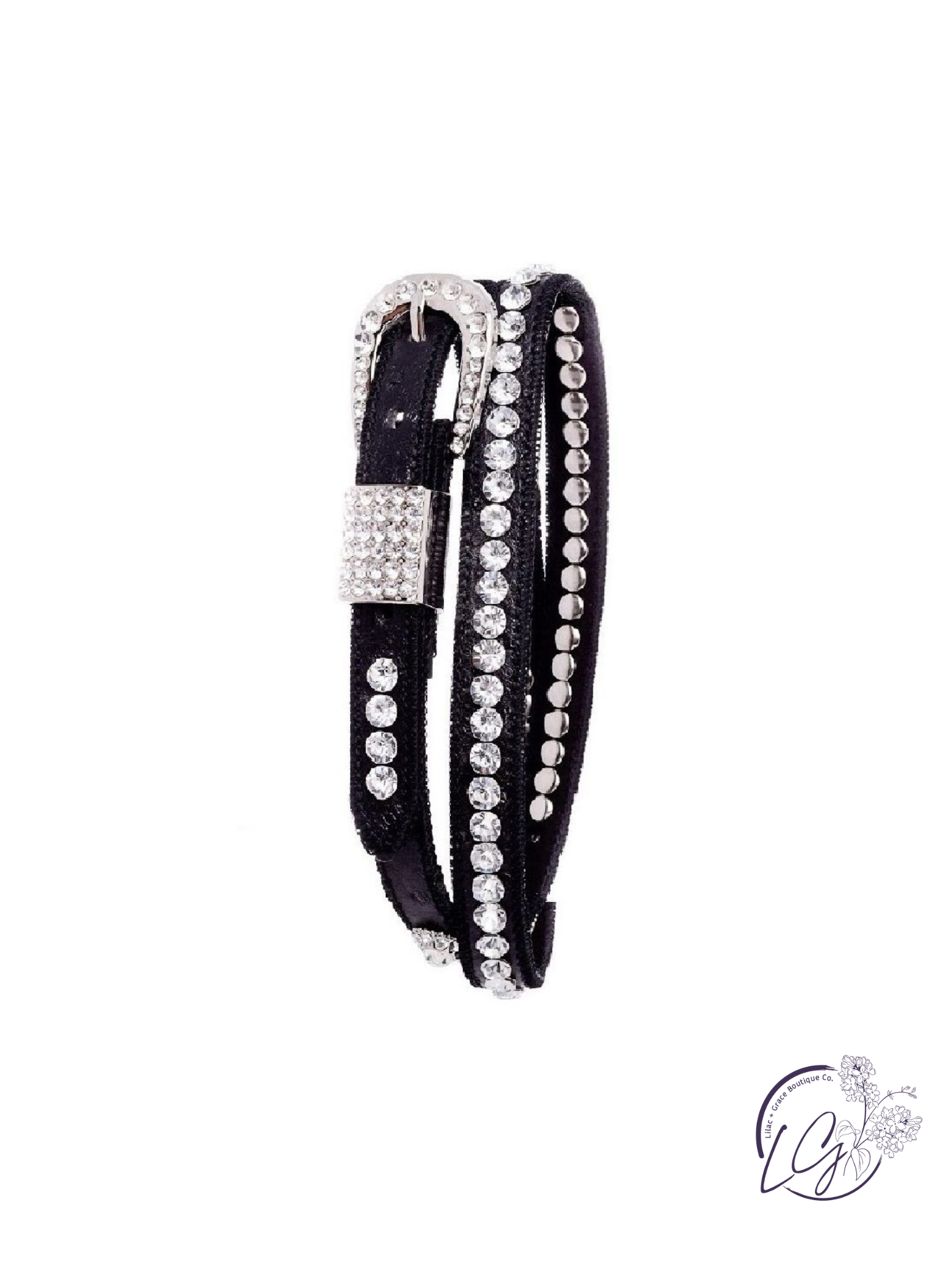This skinny leather belt features allover rhinestone studs for a sleek, light-catching finish. Slim and structured, it adds the perfect amount of edge and shine without overpowering your look.