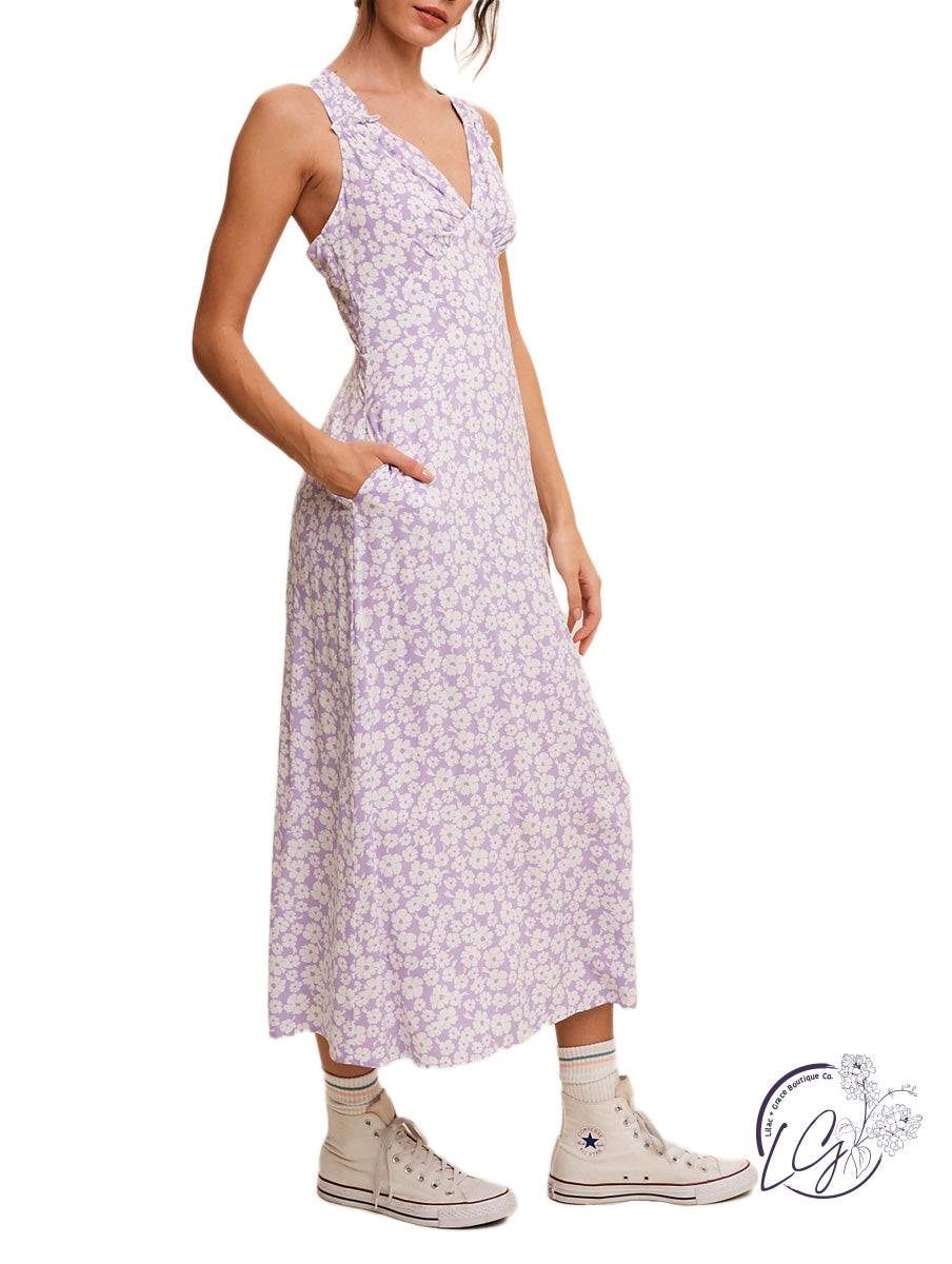 Ditzy floral print V-neck A-line maxi midi dress