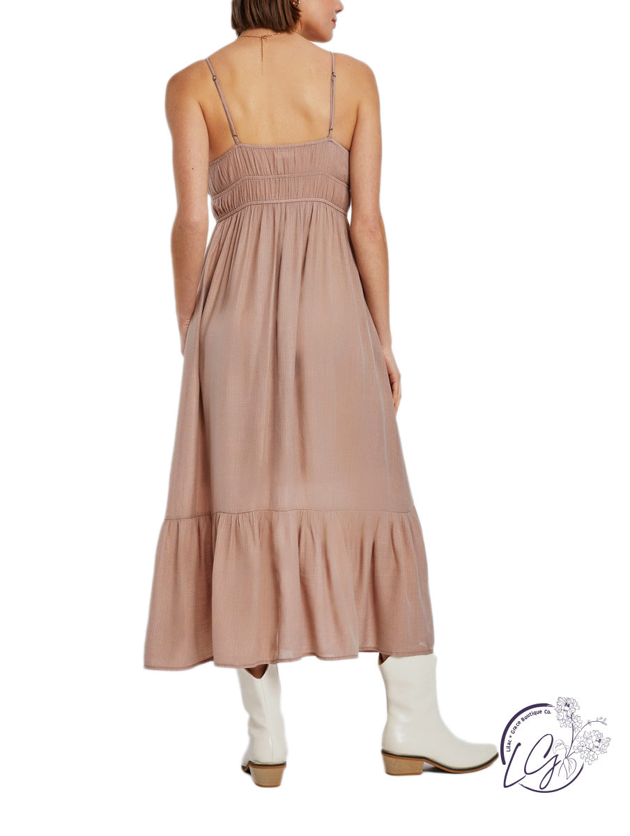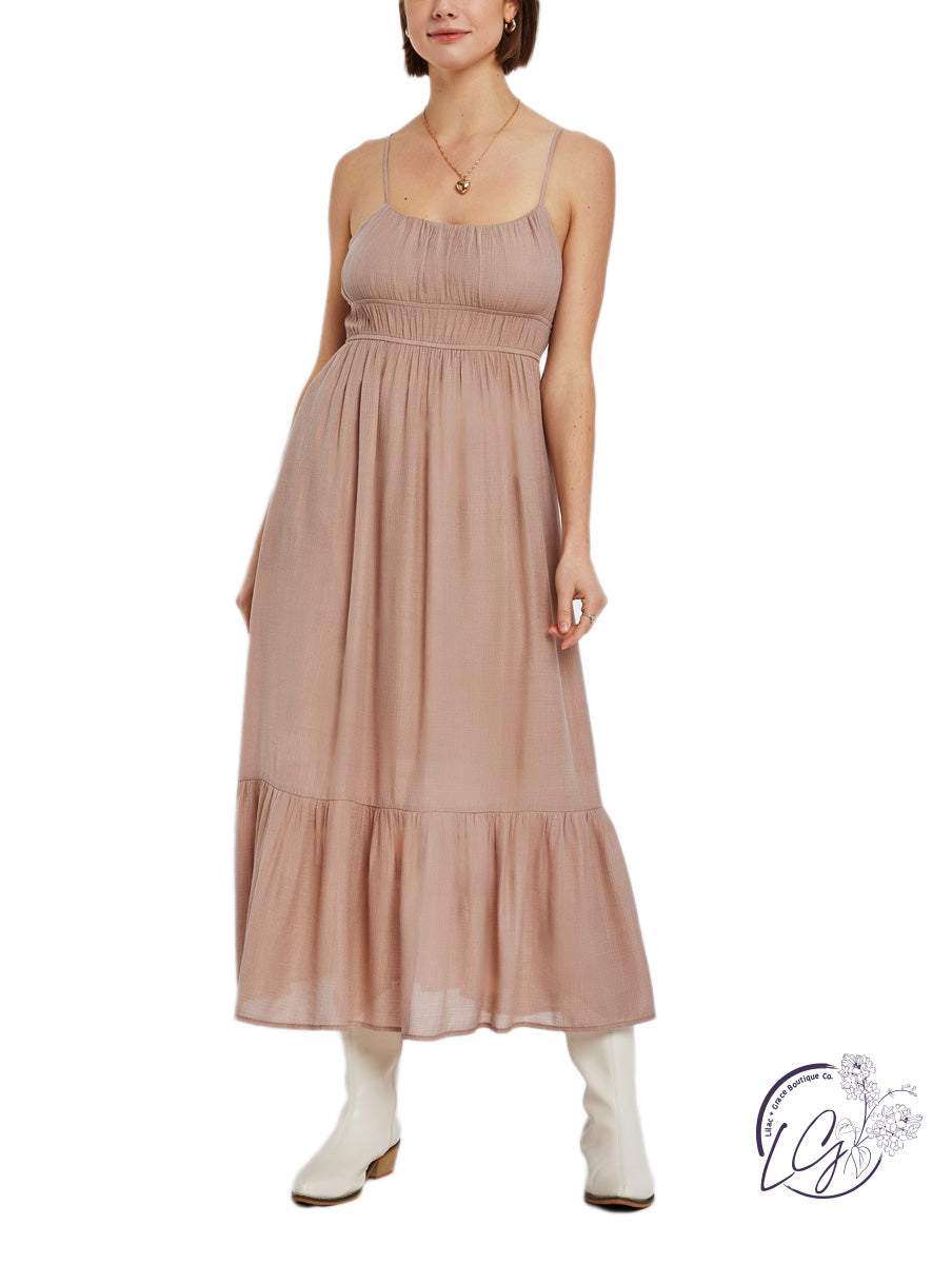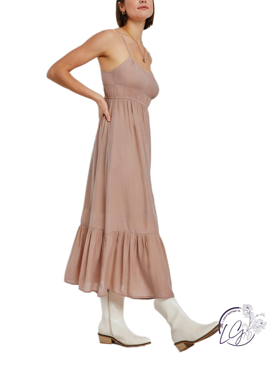Solid double-waisted sundress with gathered bust. Adjustable spaghetti straps, side pockets, and double lined for comfort.