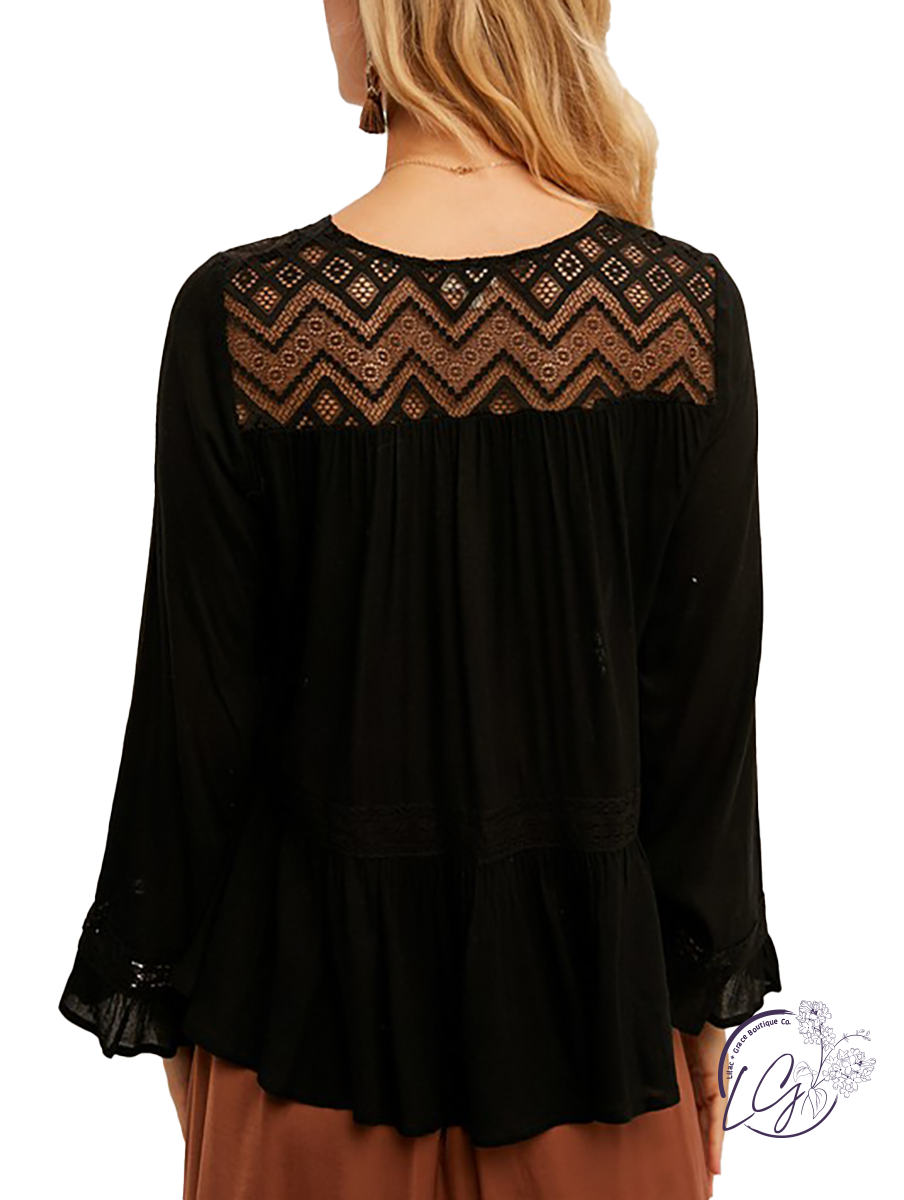 Lace Crochet Trim Peplum Blouse