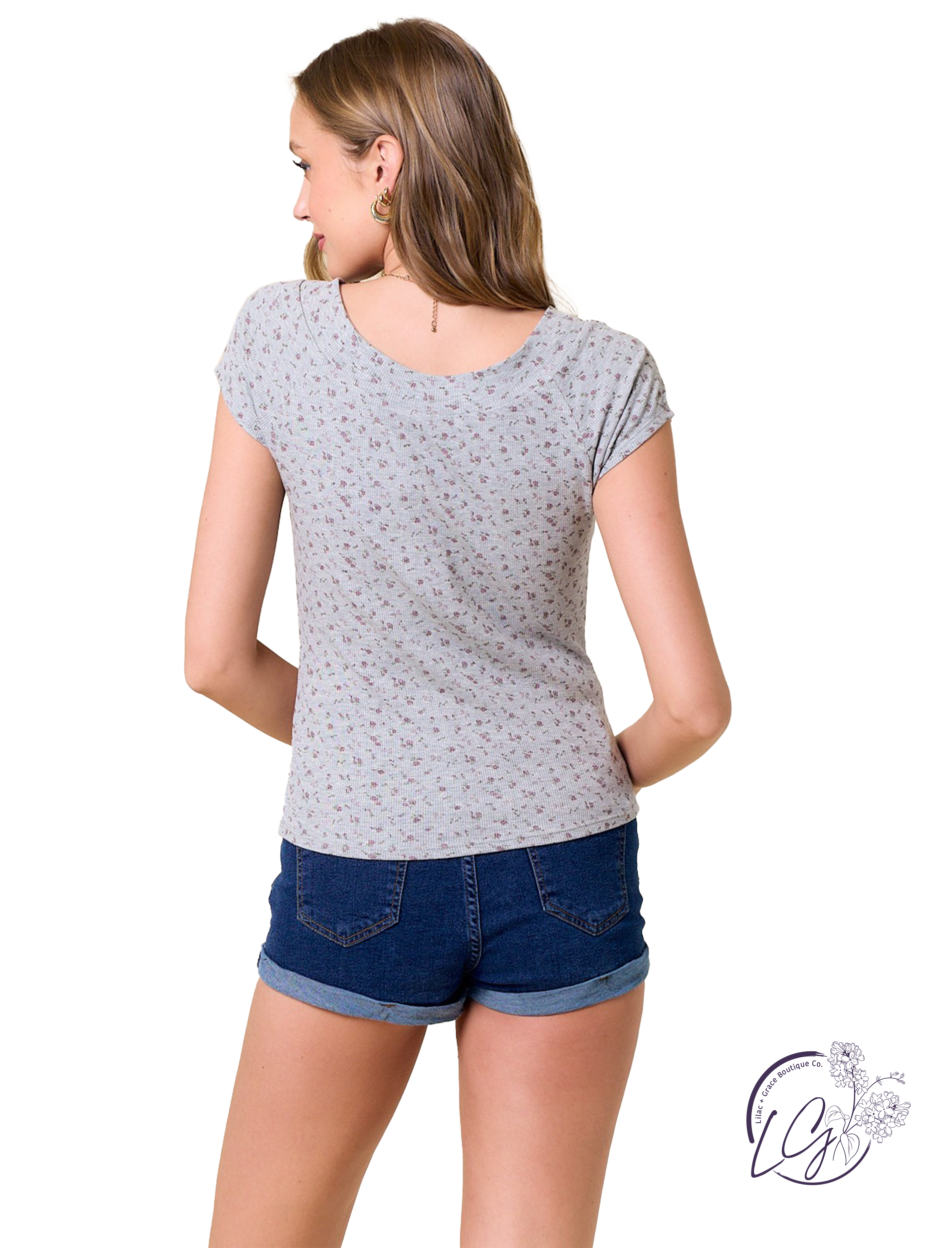 Make a fresh statement with this off-the-shoulder ribbed knit top, featuring a delicate floral print that brings a hint of romance. Its form-fitting, stretchy silhouette comfortably hugs your figure, while cap-style short sleeves with rolled cuffs add subtle charm. Lightweight and easy to style, this top pairs effortlessly with high-waisted jeans for casual days or a flowing skirt for a flirty, feminine look.