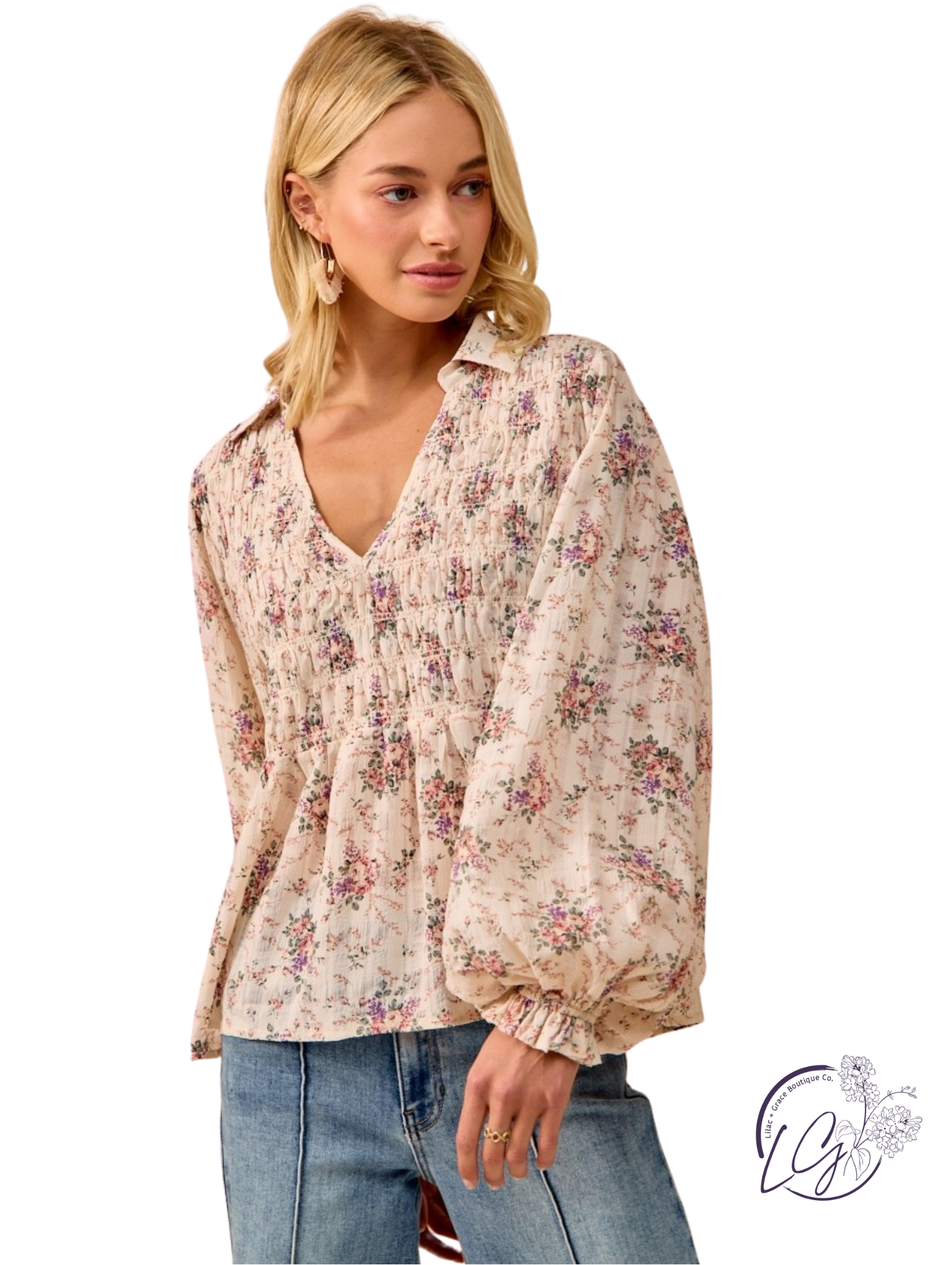 Make a bold statement with the Dust Rolls V-Neck Top, featuring a striking floral print that commands attention. Its woven fabric drapes effortlessly, while the smoked detailing adds a touch of edgy texture. Balloon sleeves bring dramatic volume, perfectly balancing the daring V-neckline. This top is designed for those who aren’t afraid to stand out and express their fearless style.