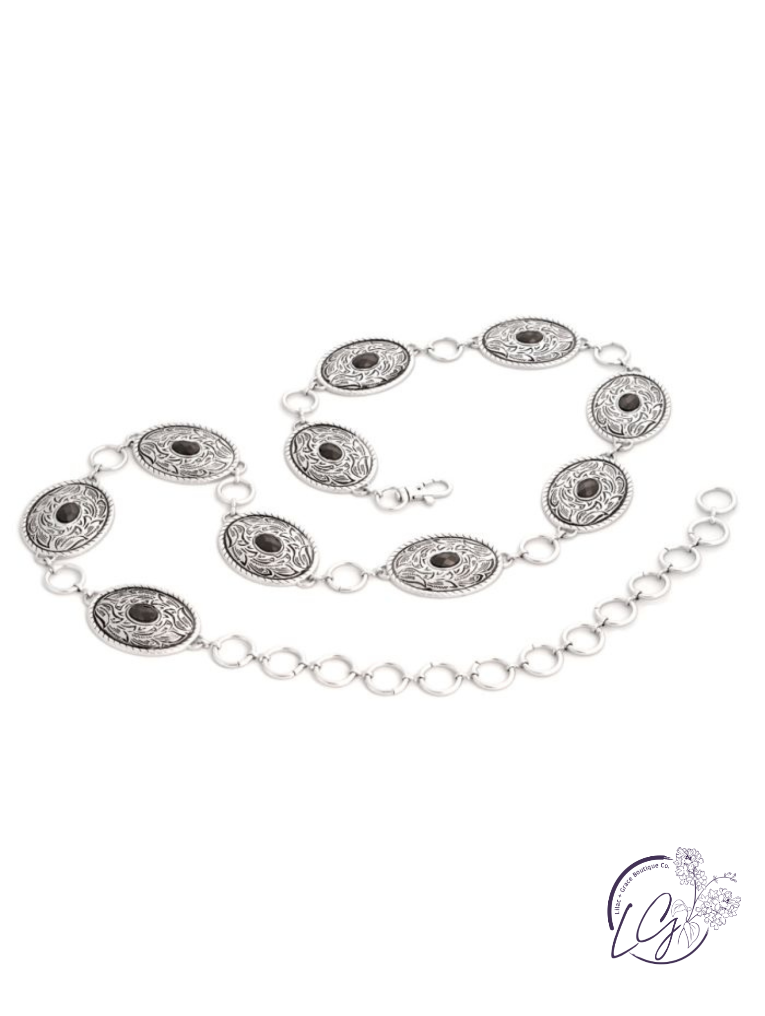 This oval concho belt brings together vintage grit and a touch of shine. Each etched concho is set with a single rhinestone, giving it just enough glint to catch the light without going over the top. The adjustable length lets you wear it high or slung low, depending on the vibe.