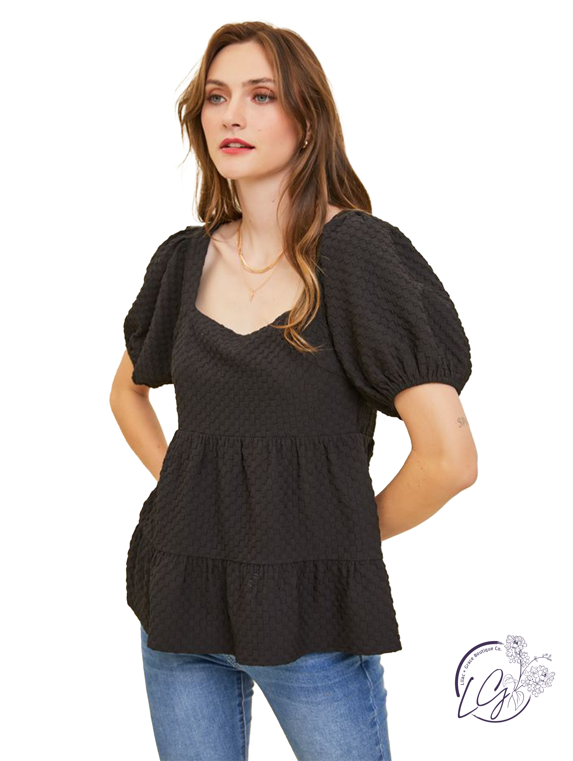 Experience the ultimate versatility of our Elegance in Tiers Blouse! This tiered ruffle top is perfect for any occasion, from casual outings to formal events. Elevate your style with this effortlessly chic and feminine blouse.