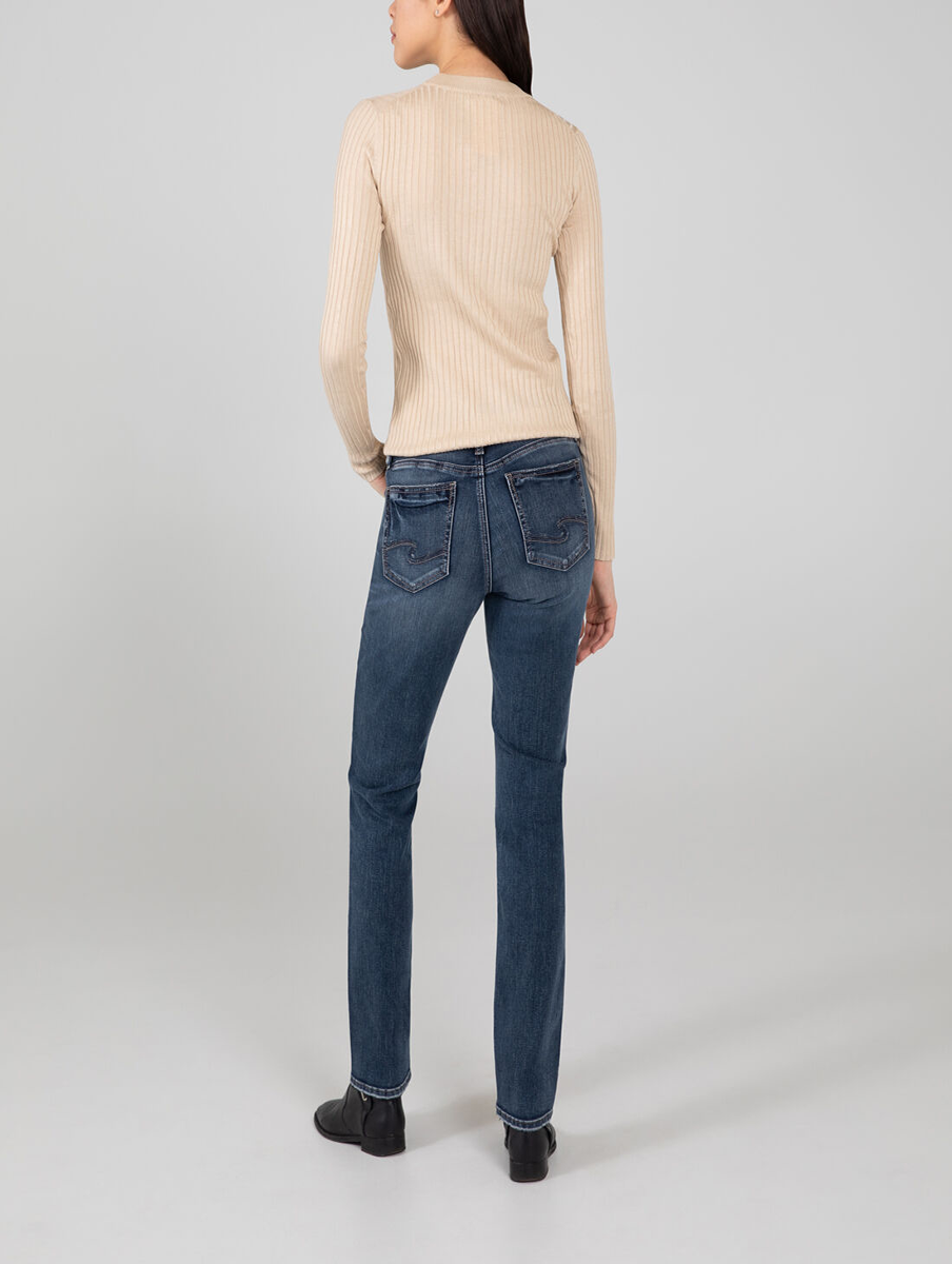 A more relaxed version of our signature curvy fit, Elyse is engineered with an eased waistband that prevents both gapping and muffin top. It's specifically designed for curvy body types who are thicker and fuller through the midsection and backside, featuring a comfortable everyday mid rise with the perfect front-to-back proportion and extra room through the hip and thigh. Washed to a dark indigo shade with slight hand sanding and whiskers, and finished with a classic straight leg. This pair is crafted in an eco-friendly power stretch fabric featuring REPREVE® recycled polyester made from recycled content, including plastic bottles (but amazingly, is still as soft and comfortable as ever). Basically, it's a fit you can really feel good about wearing.