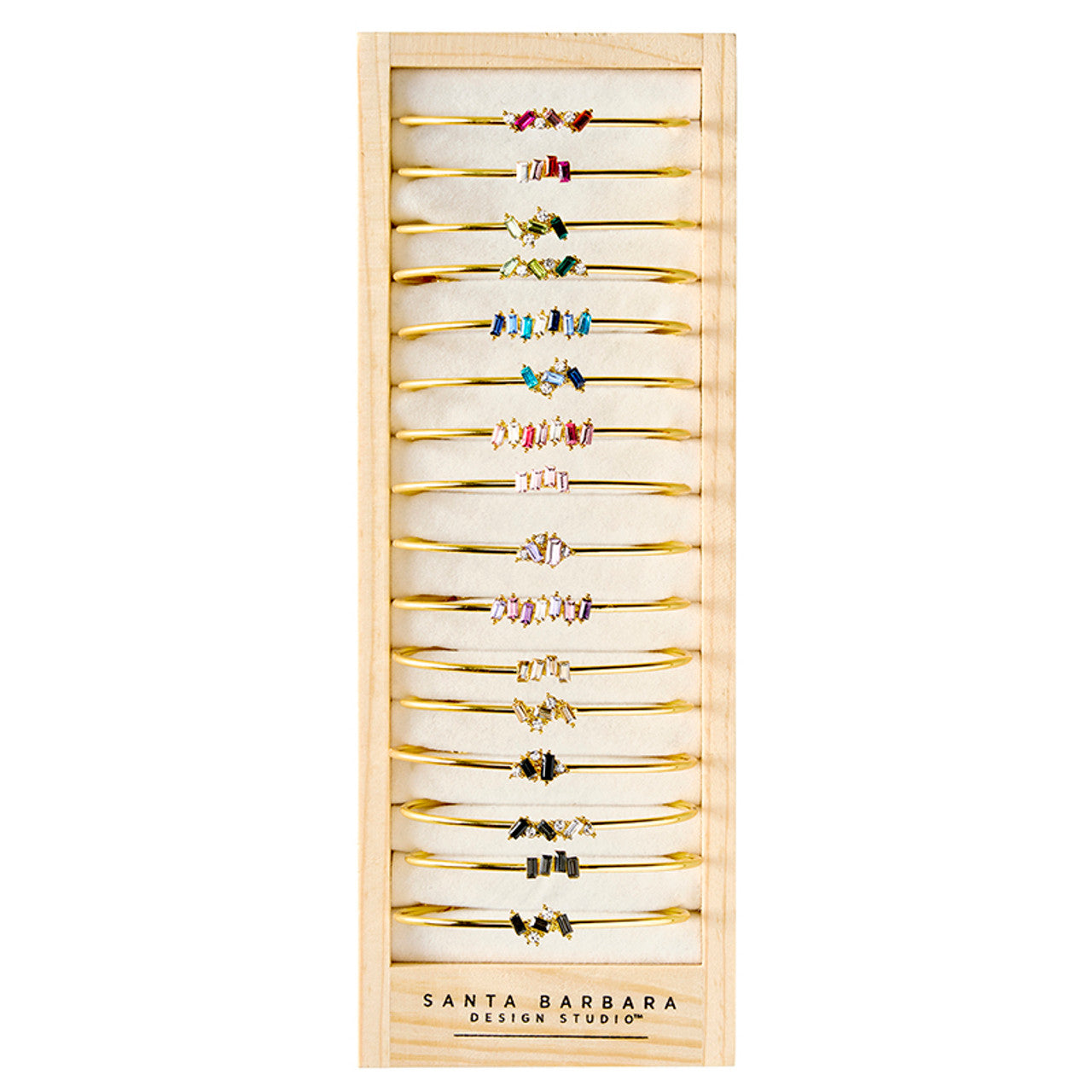 Delicate, dazzling, and effortlessly chic — the Fleur Crystal Bangles adds a refined pop of color to any look. Each gold-tone bangle features petite baguette-cut crystals arranged in unique floral-inspired clusters, creating a modern yet feminine sparkle that catches the light from every angle.