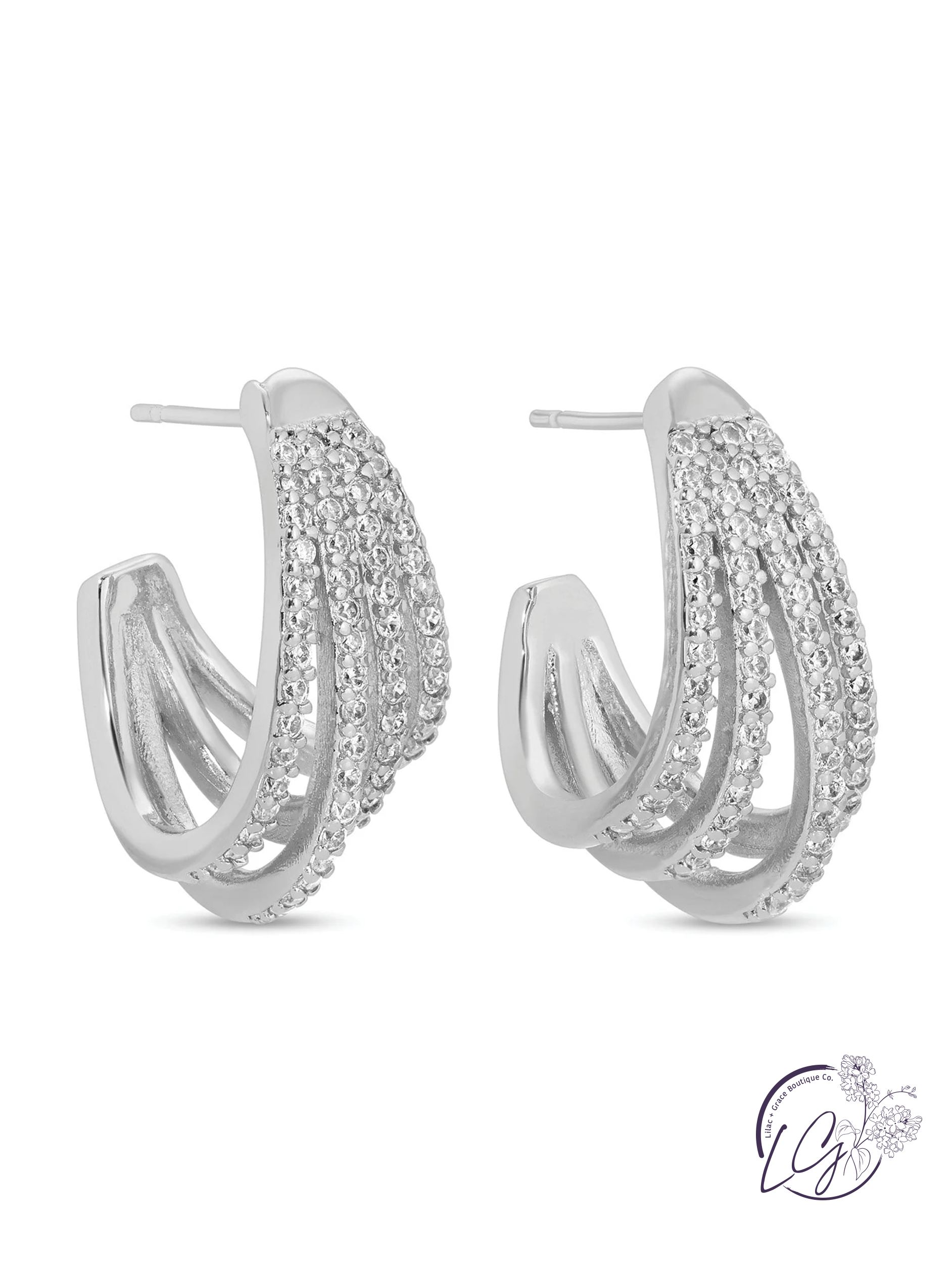 Elevate your glam game with these fabulous flashy hoops adorned with 4 layers of pave perfection.