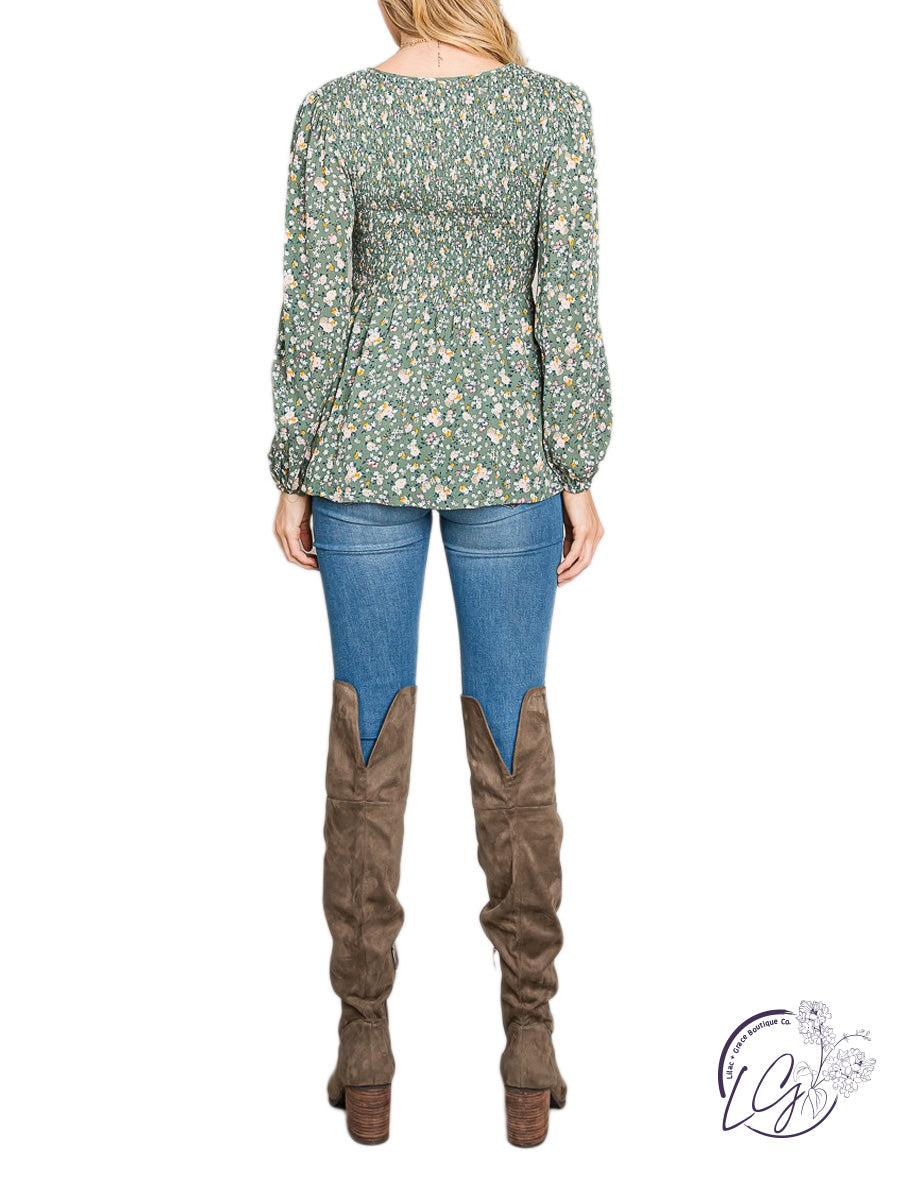 Designed with a loose and flowy silhouette, it provides a relaxed and comfortable fit. The babydoll style, with its empire waistline, creates a flattering and youthful shape, while allowing for ease of movement. Adorned with a delightful floral print, the top bursts with vibrant colors and intricate patterns, adding a touch of whimsy and femininity. The gentle ruffles or gathering details on the sleeves or neckline enhance the overall sweetness and delicacy of the garment. Whether paired with jeans or shorts for a casual daytime look or dressed up with a skirt for a more dressed-up occasion, the Floral Babydoll Top effortlessly embodies a carefree spirit. It is a versatile piece that can be styled in various ways, making it a perfect choice for adding a touch of floral beauty and charm to your wardrobe.