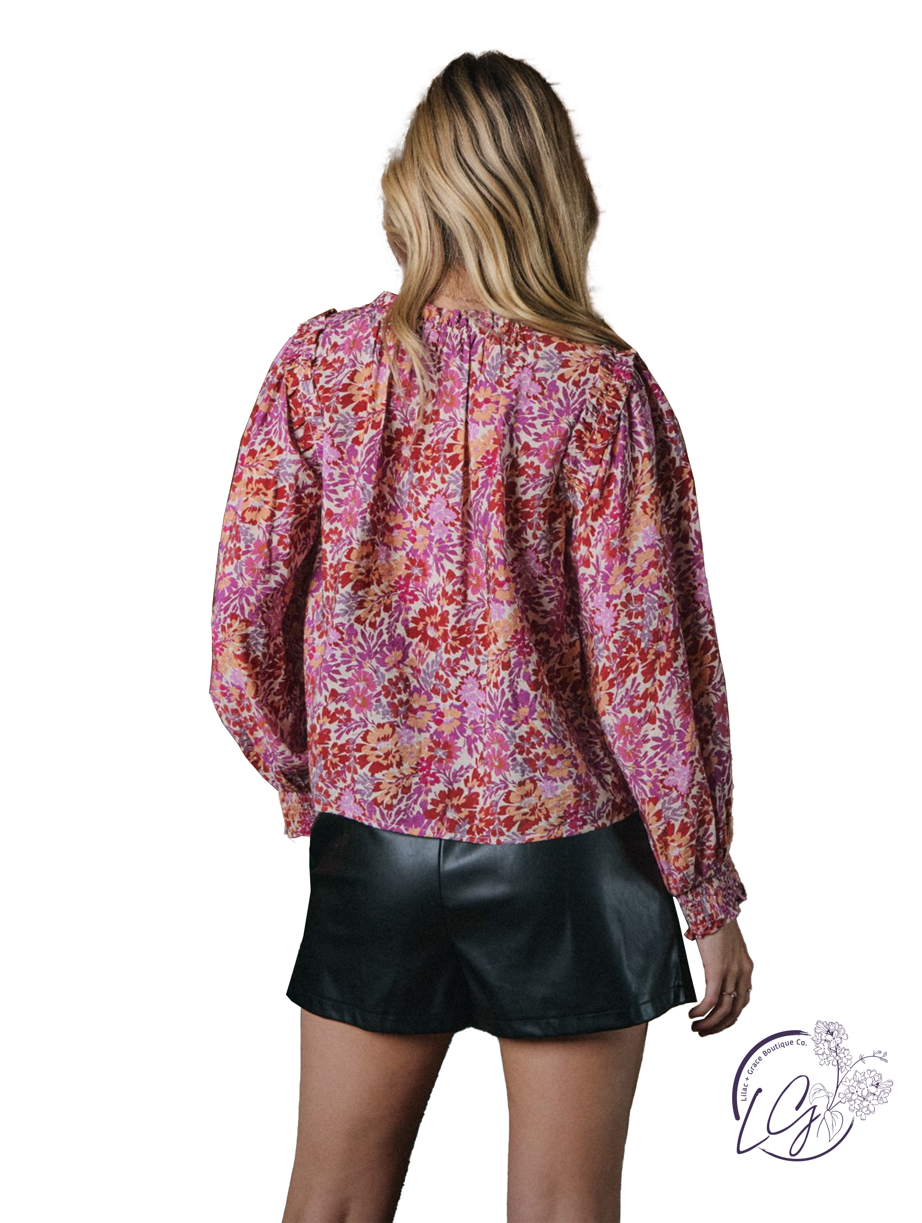 Exude elegance and femininity with our Floral High Neck Blouse. This stunning piece features a delicate floral print, charming ruffle details, and a chic smocked long sleeve. Perfect for any occasion, pair with your favorite jeans or skirt for a timeless and stylish look.