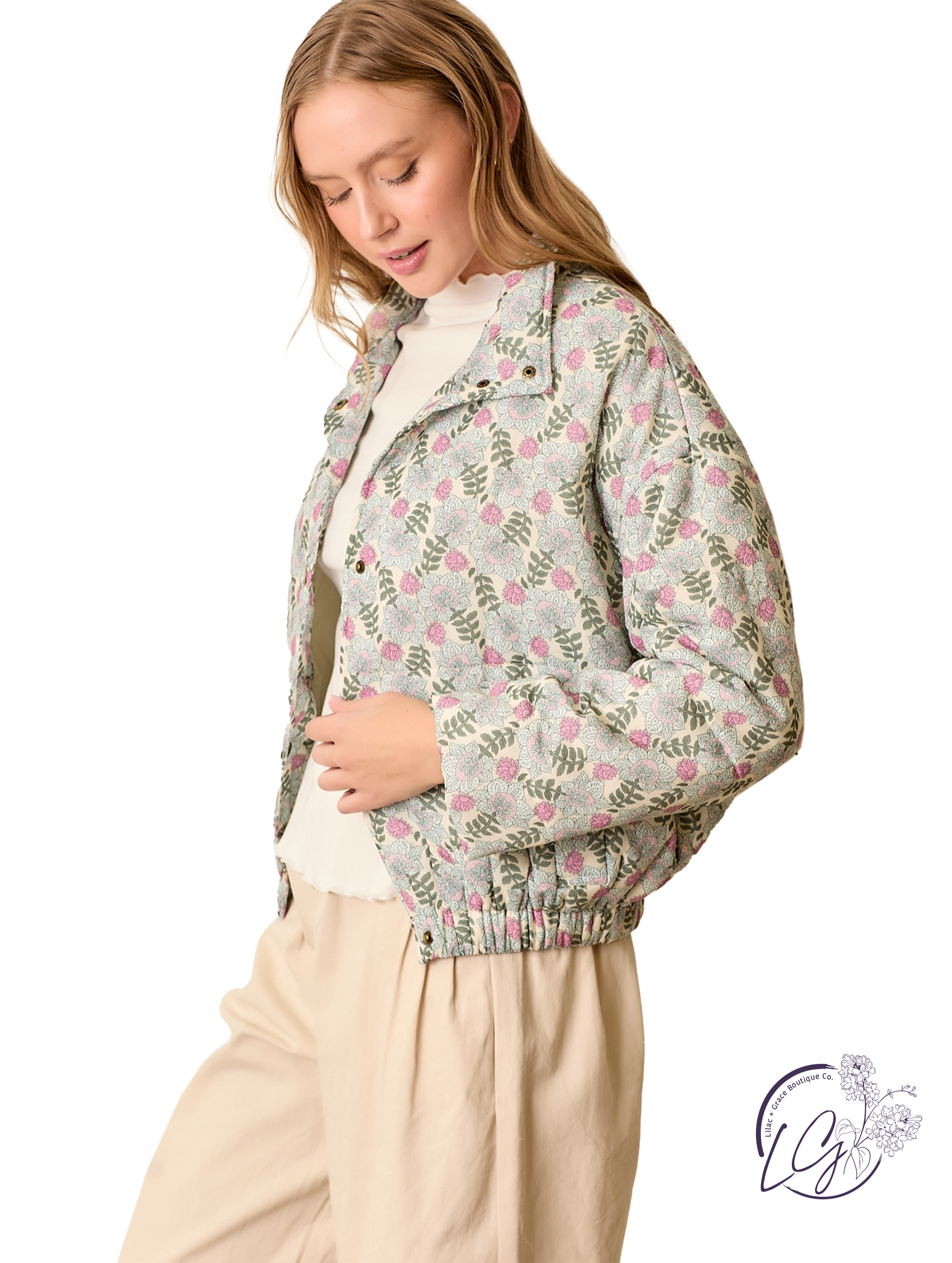 Wrap yourself in warmth and pattern with this floral print puffer jacket. Featuring an eye-catching ethnic-inspired design, it’s finished with functional buttons and roomy front pockets for a blend of style and practicality. The cozy, quilted construction adds texture and insulation, making it a bold yet wearable layer for cooler days. Pair it with denim and boots for a look that’s equal parts comfort and character.