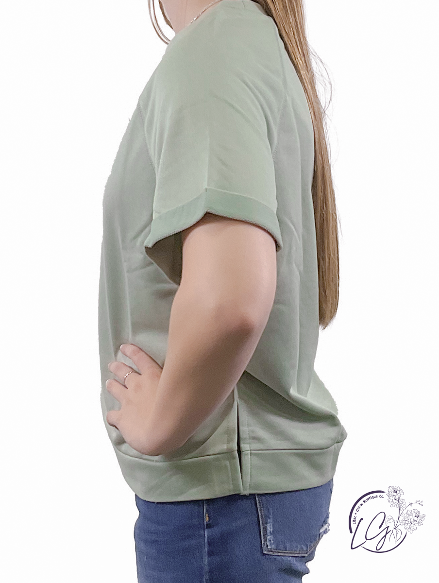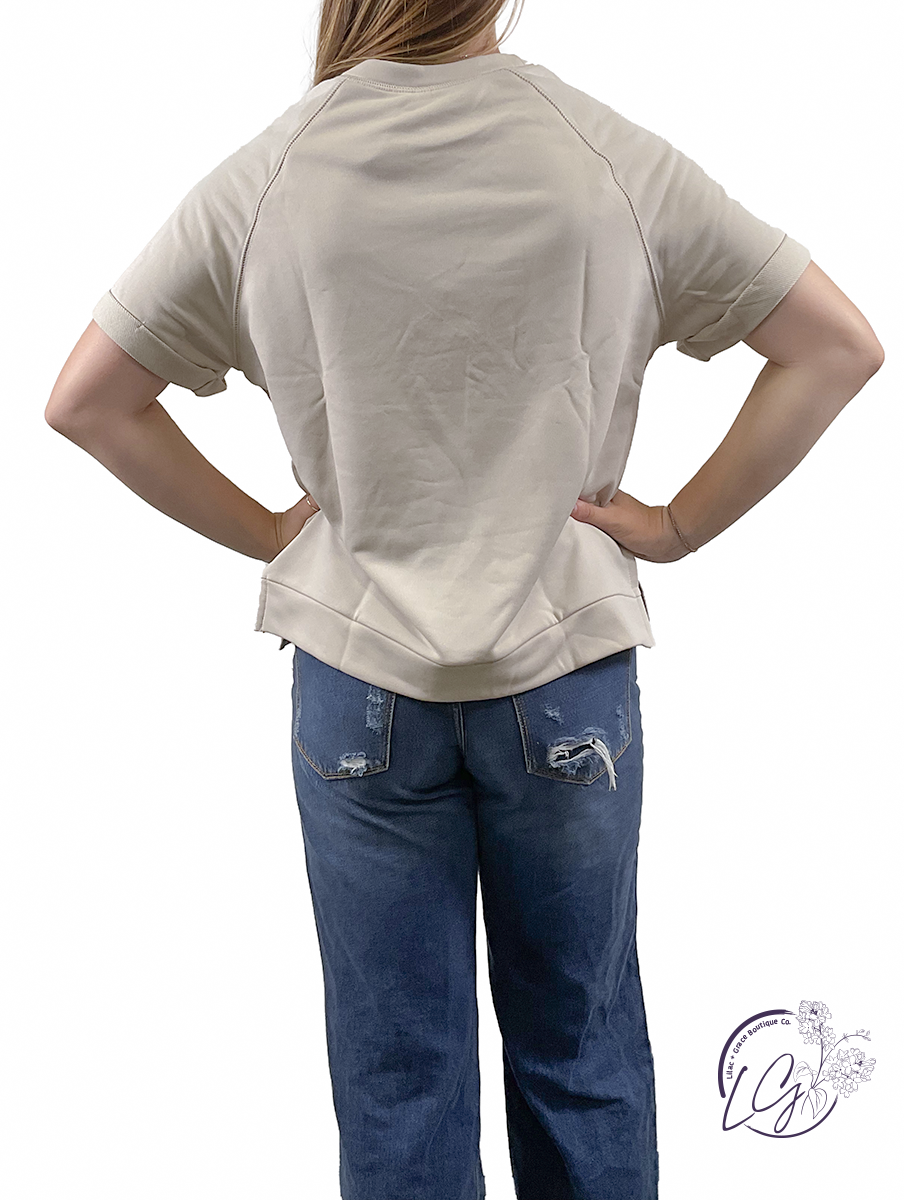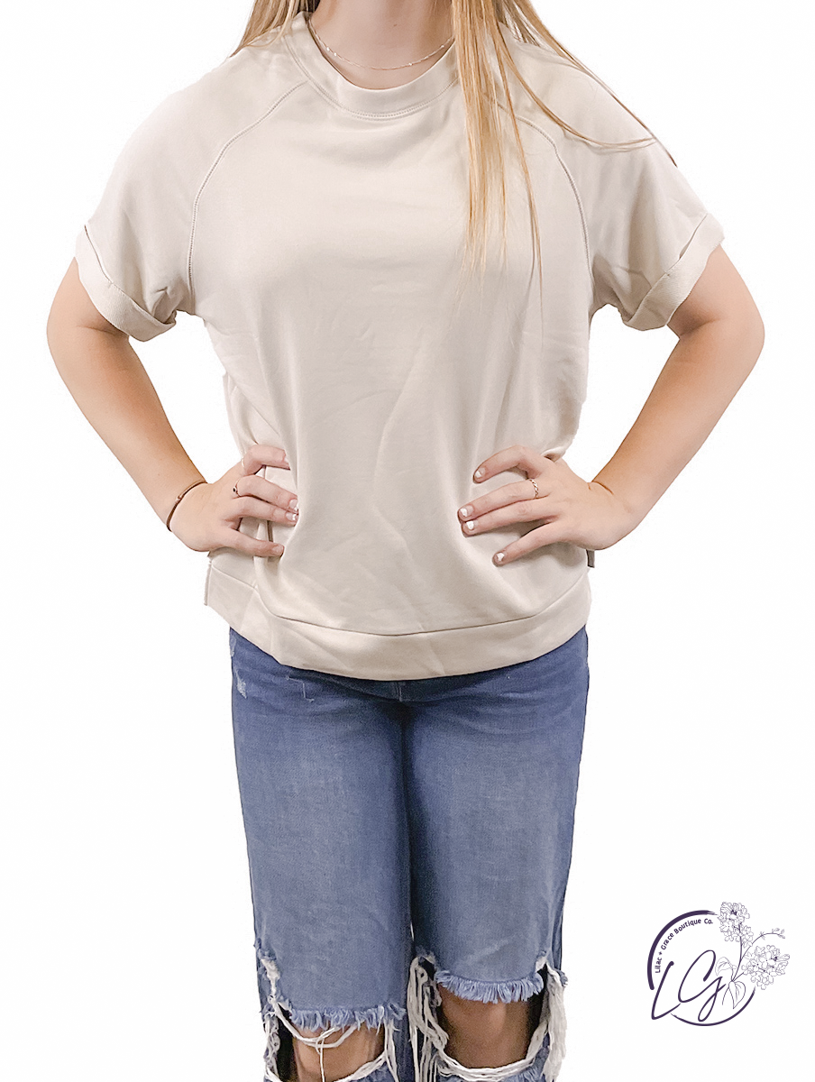 The "French Terry Delight Top" encapsulates comfort and style in perfect harmony. Crafted from premium French terry fabric, this top offers a luxurious and soft feel against your skin, making it an essential piece for those seeking both coziness and fashion-forward elegance. The top's versatility shines through its thoughtful details, including a slightly extended length that allows for easy pairing with leggings or jeans. The relaxed fit ensures all-day comfort, while the side slits provide a subtle yet stylish flair, allowing the top to move with you gracefully.