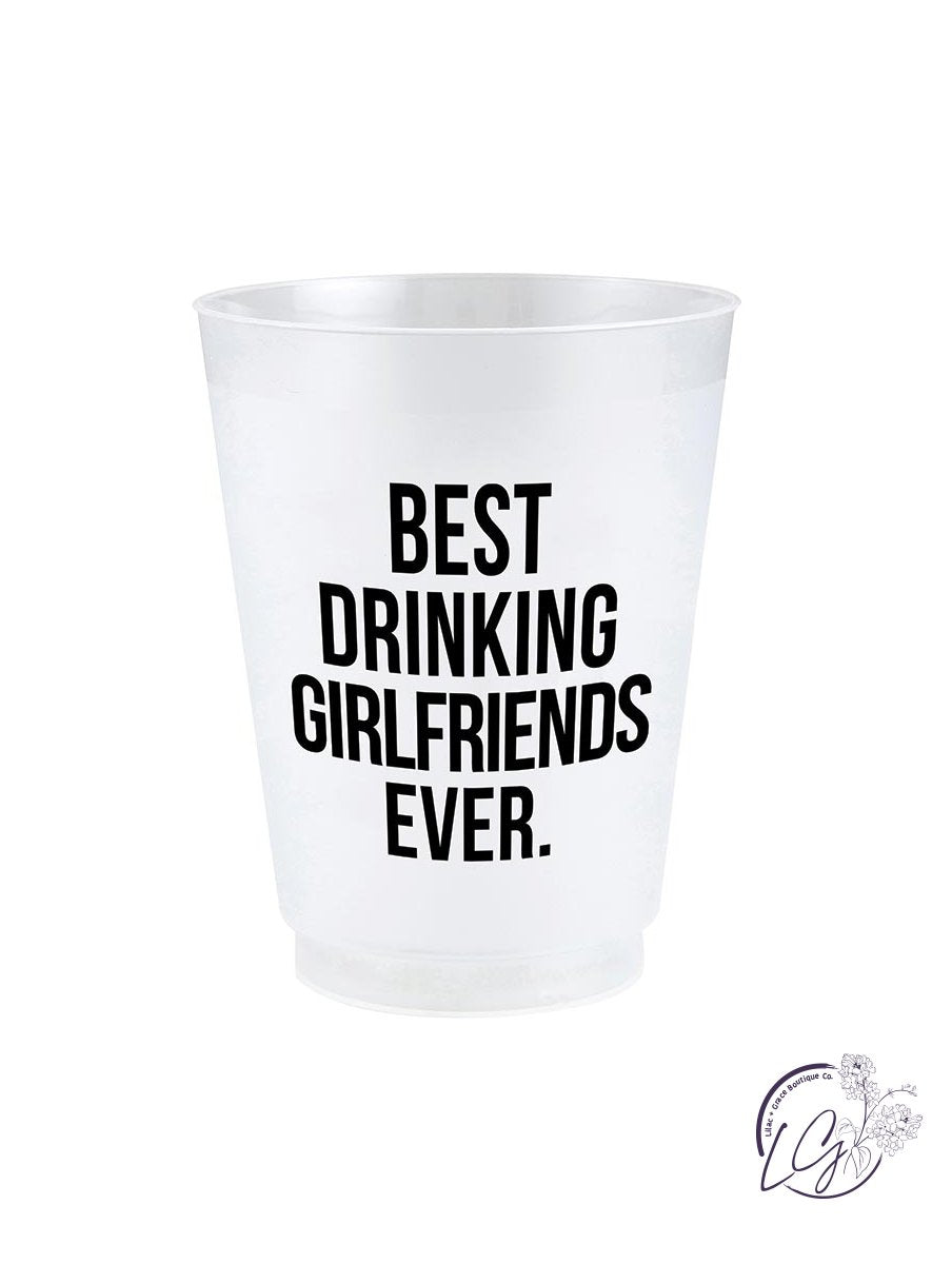 What sets this Frost Cup apart is the heartfelt inscription that makes it a unique and cherished item. The words "Best Drinking Girlfriends Ever" are delicately inscribed on the surface, turning a simple cup into a meaningful and personalized keepsake. This endearing message adds a special touch, making it an ideal gift for those who share a bond over shared moments, laughter, and of course, good drinks.