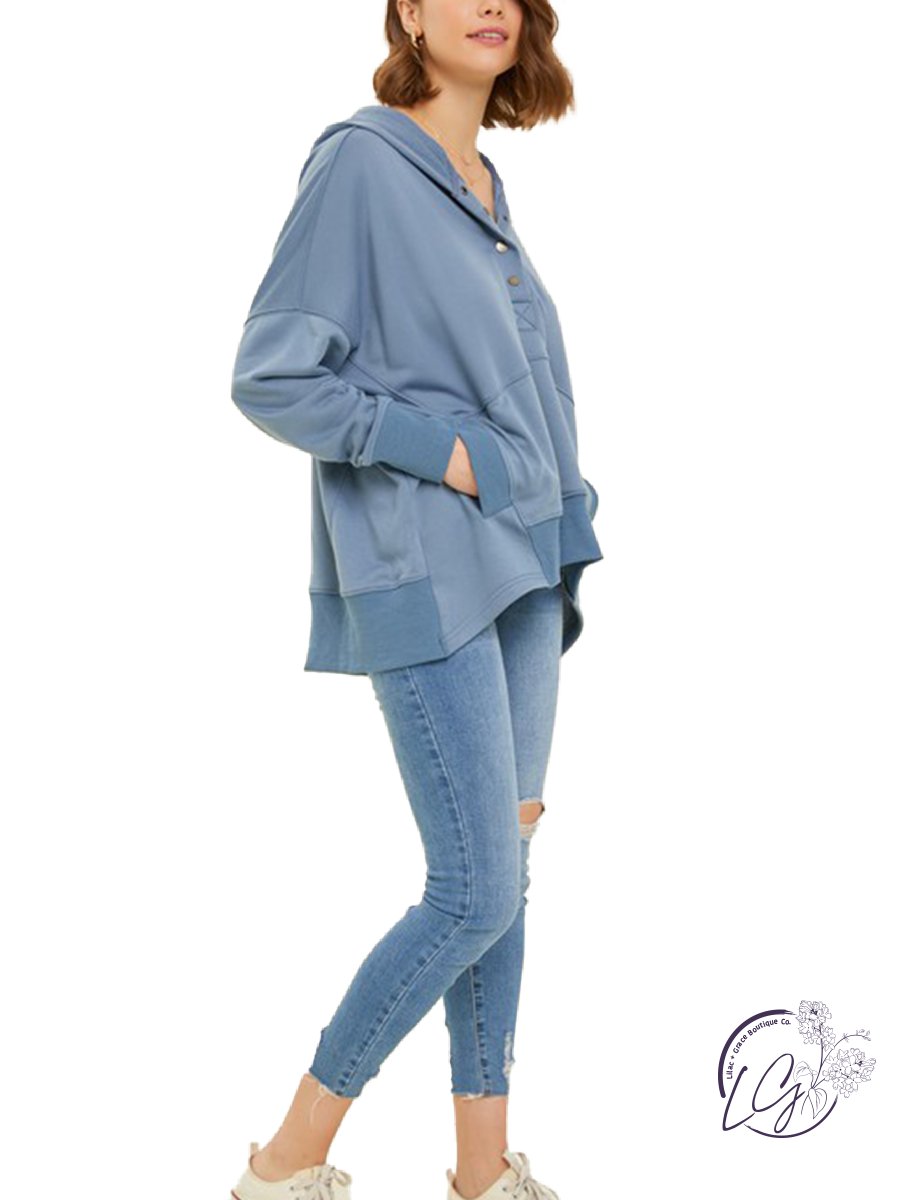 The soft and plush French terry fabric creates a gentle drift of coziness, enveloping you in warmth with each wear. The oversized silhouette adds a relaxed and laid-back vibe, perfect for casual days and cozy nights. The hood provides an extra layer of comfort, making it ideal for those moments when you want to embrace a feeling of tranquility.
