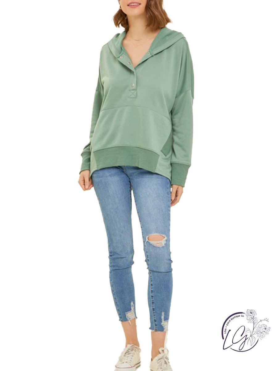 Kangaroo pockets not only contribute to the casual aesthetic but also offer practicality, providing a convenient space to keep your hands warm or store small essentials. The addition of snap buttons adds a subtle yet stylish detail, allowing you to customize the look and feel of the sweater.