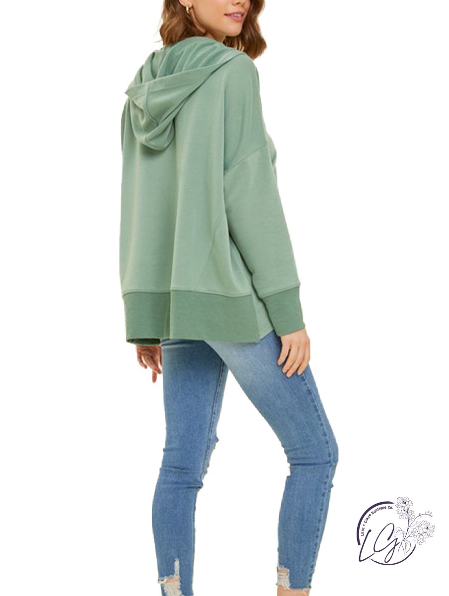 Introducing the "Gentle Drift Hooded Sweater," a cocoon of comfort and style that takes loungewear to new heights. This oversized French terry pullover is designed for those who appreciate the fusion of relaxation and modern aesthetics.