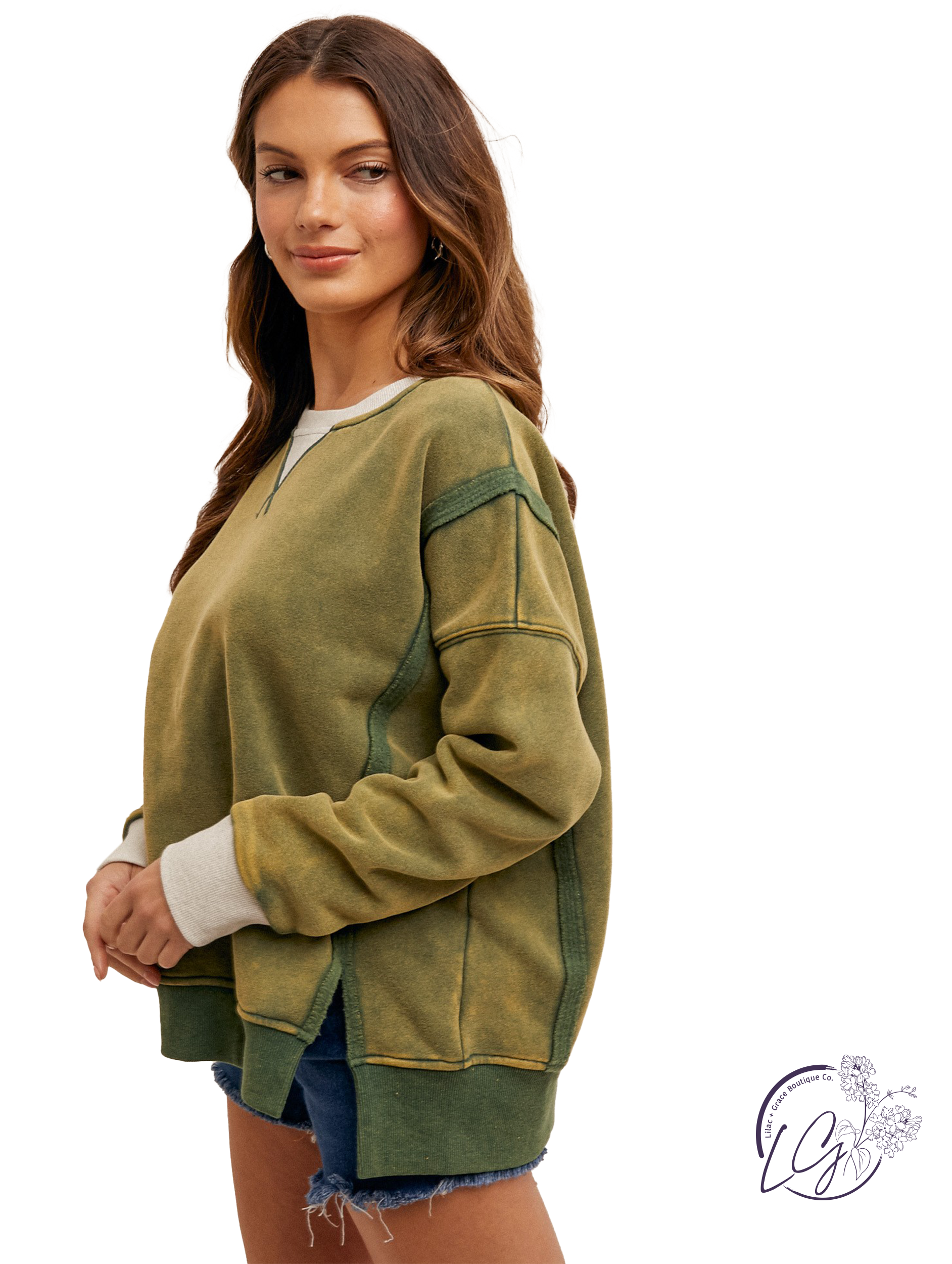 Experience ultimate comfort and style with our Grows In Quiet Sweatshirt! This oversized sweatshirt features a unique color block design with a snow wash finish, making it a statement piece in your wardrobe. Stay cozy and fashionable with our Grows In Quiet Sweatshirt.
