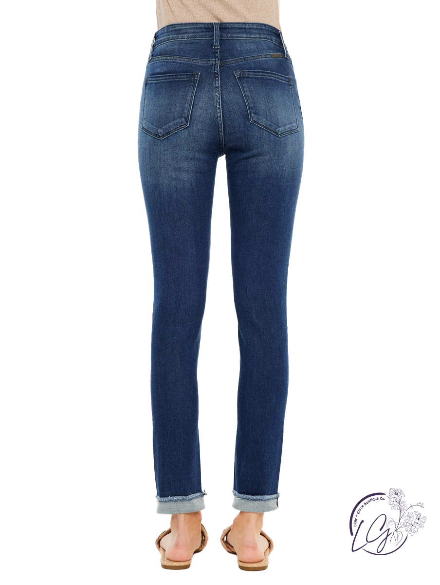 The Reese High Rise Cigarette by Kancan is a classic and versatile addition to any wardrobe. With a high-rise waist, these jeans sit comfortably at the natural waistline, providing a flattering fit and elongating the legs. The cigarette leg silhouette offers a slim and tailored look, with a straight cut from the hip to the ankle. This timeless style is perfect for both casual and dressed-up occasions, offering endless styling options.