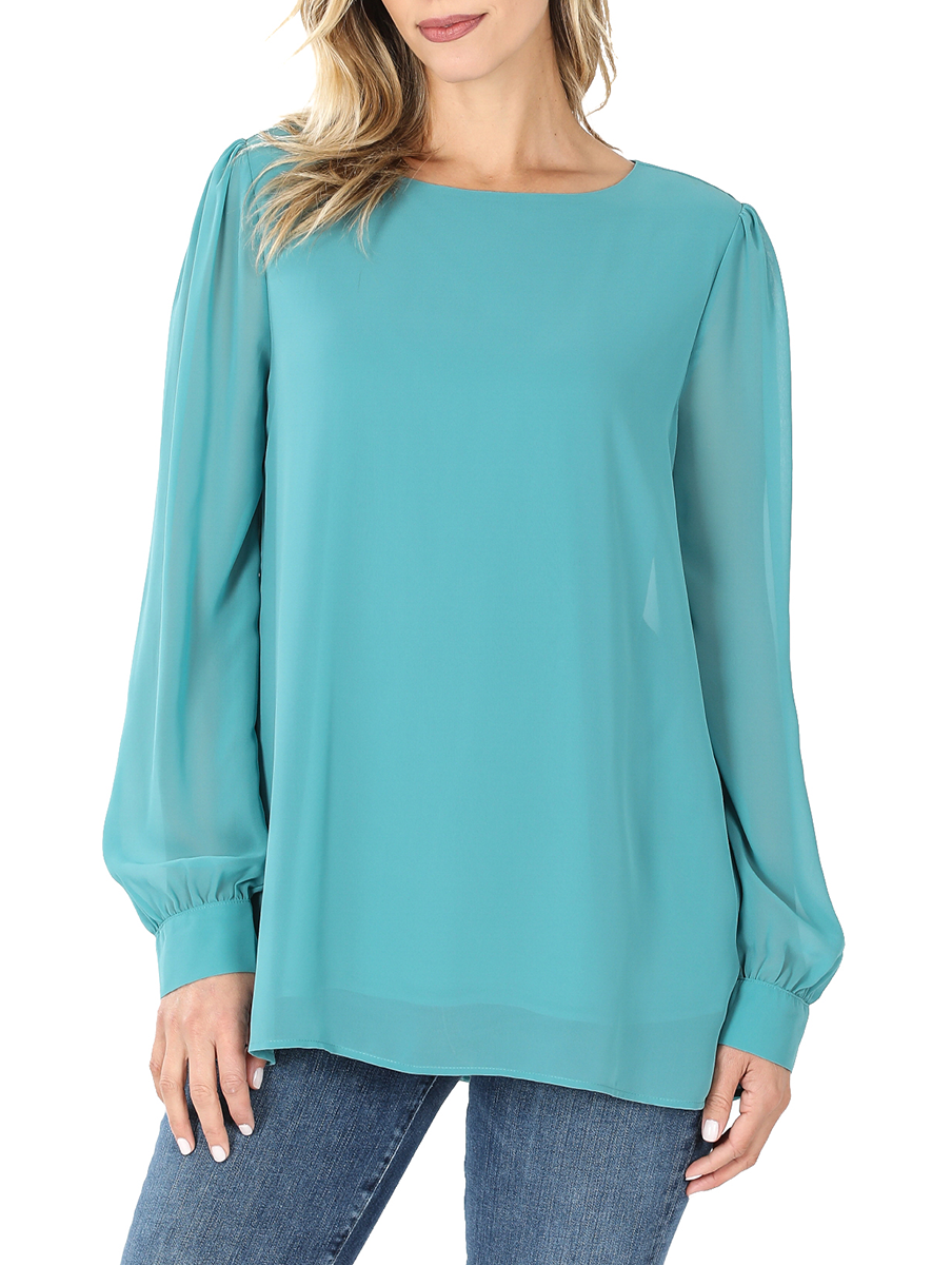 WOVEN LONG SLEEVE CHIFFON BLOUSE WITH FRONT AND BACK LINING