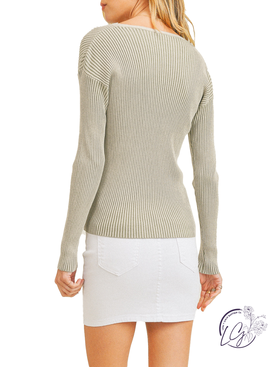 Two Tone Ribbed Crop V-Neck Sweater