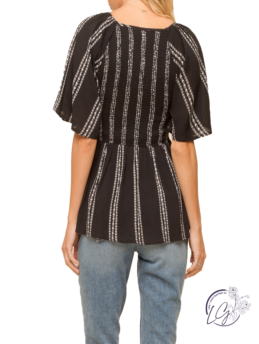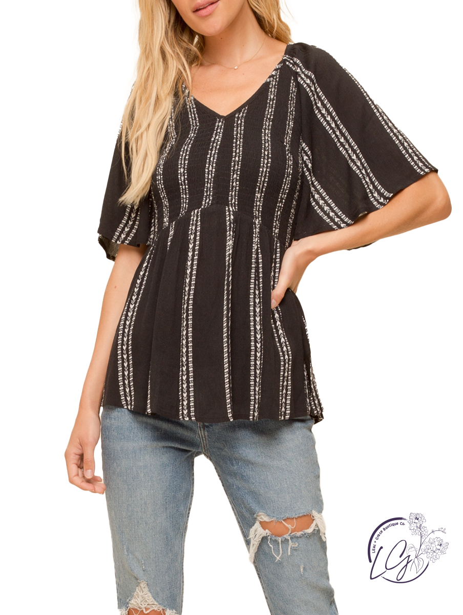 V-Neck Smocked Peplum Blouse