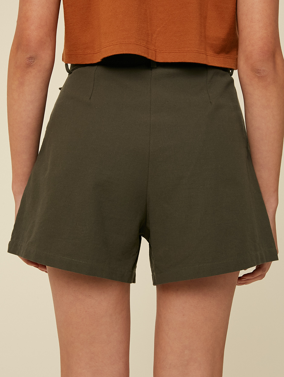 Belted twill shorts