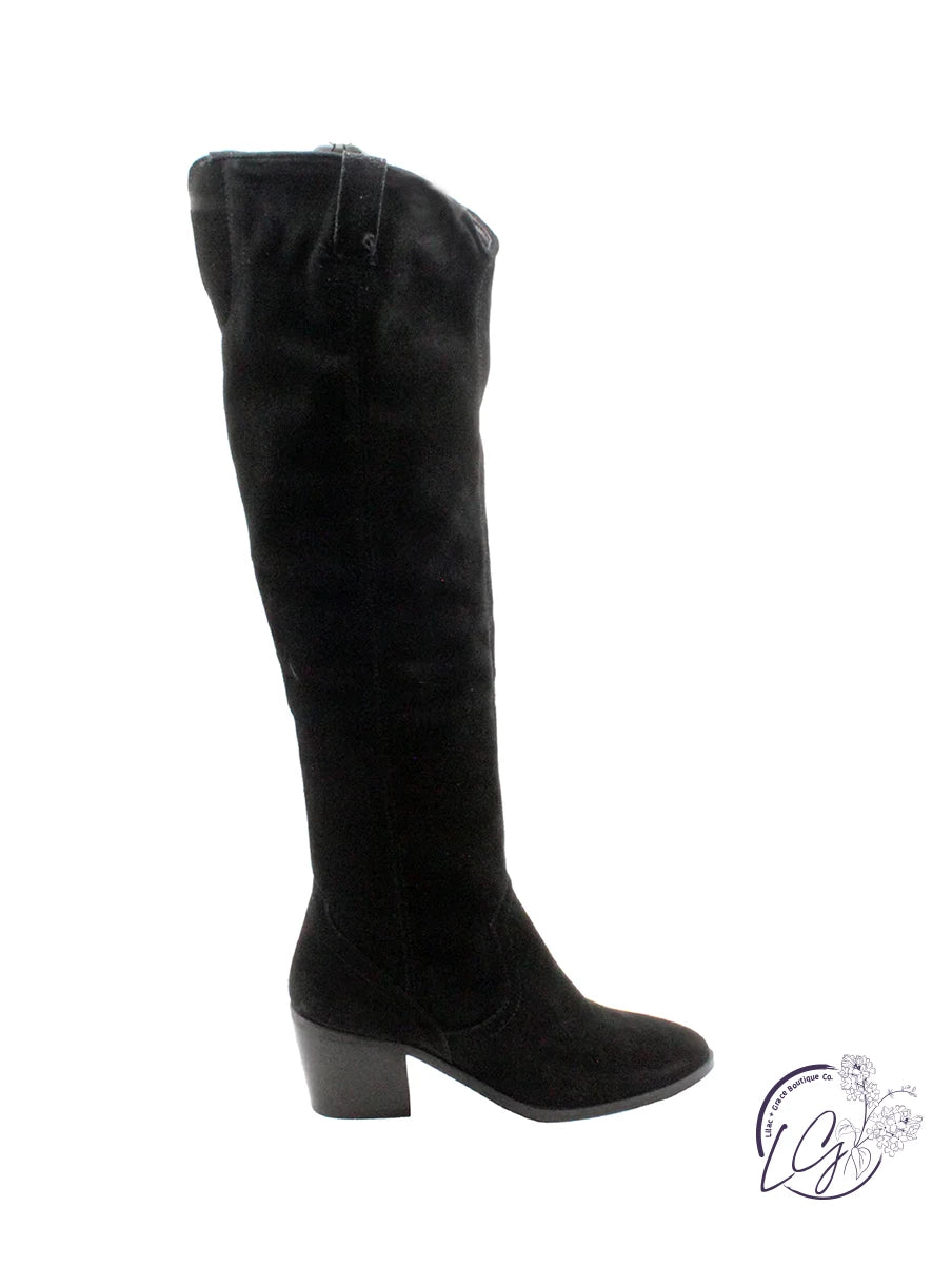 The Izzy Suede Knee High Boot in Black is a stylish and versatile footwear option. These boots feature a knee-high design, providing a sleek and sophisticated look. The use of suede material adds a touch of luxury and texture, while the black color enhances their classic and timeless appeal. With a comfortable fit and a trendy aesthetic, the Izzy Suede Knee High Boot is suitable for various occasions, making it a chic addition to any fashion-forward wardrobe.