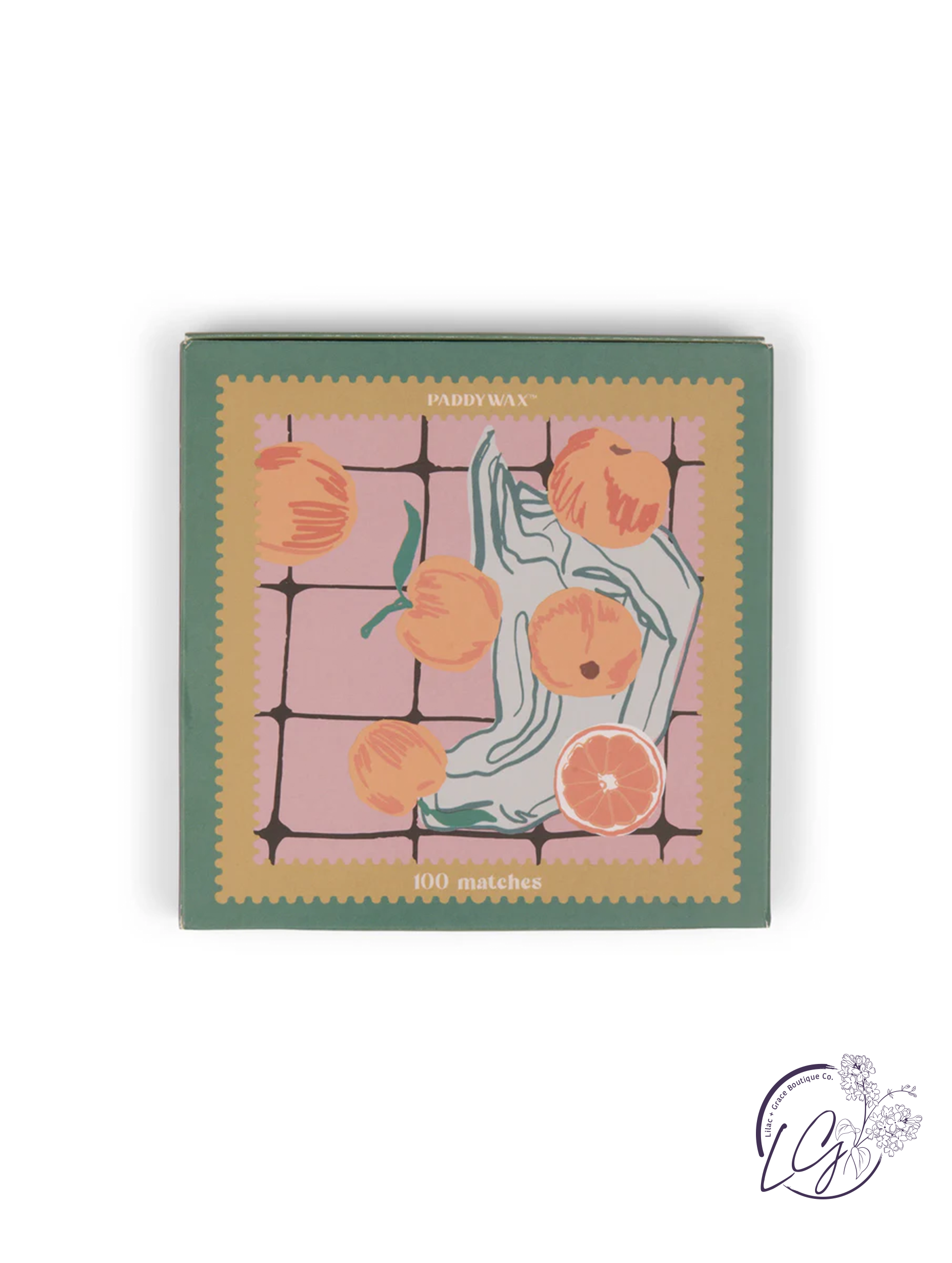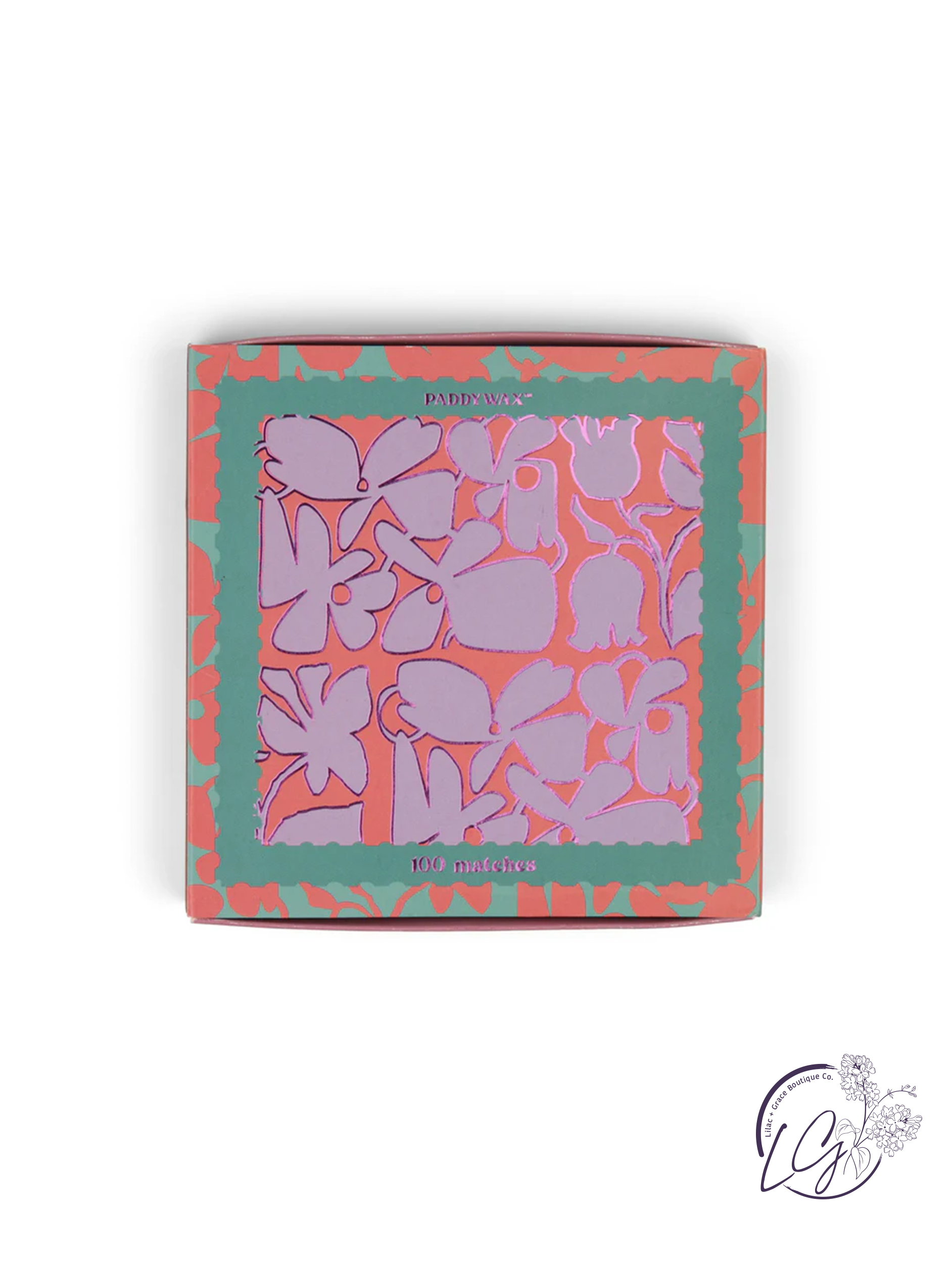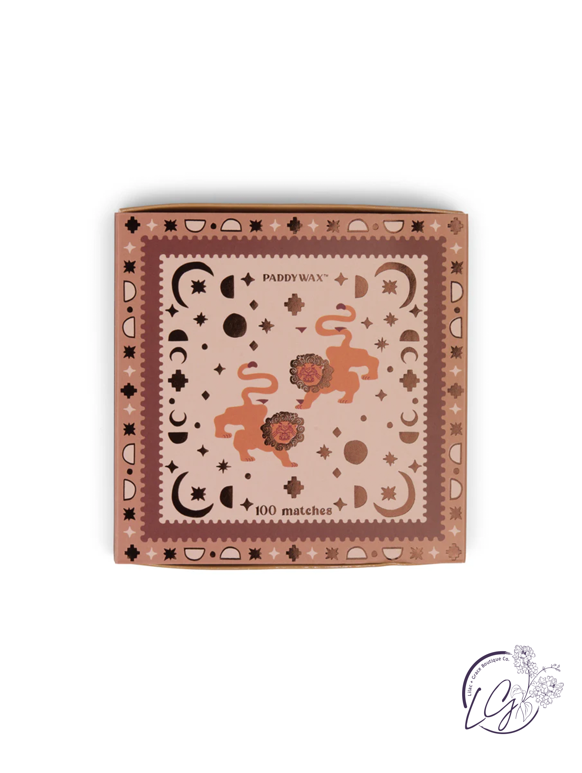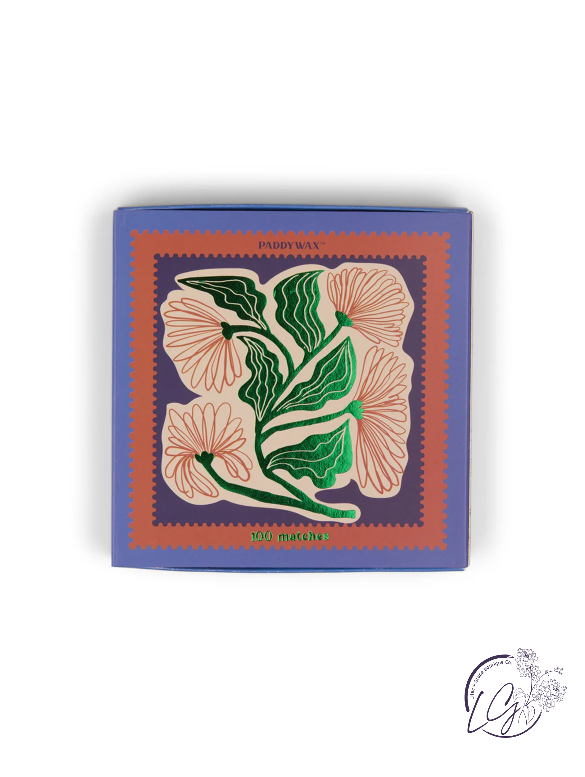 These sets of 100 matches come in a hand illustrated work of art matchbox. Each box features metallic or glossy accents, two strikers, and all 100 match tips are colored to match the design. Jumbo matches are a perfect accessory to gift with any Paddywax candle.