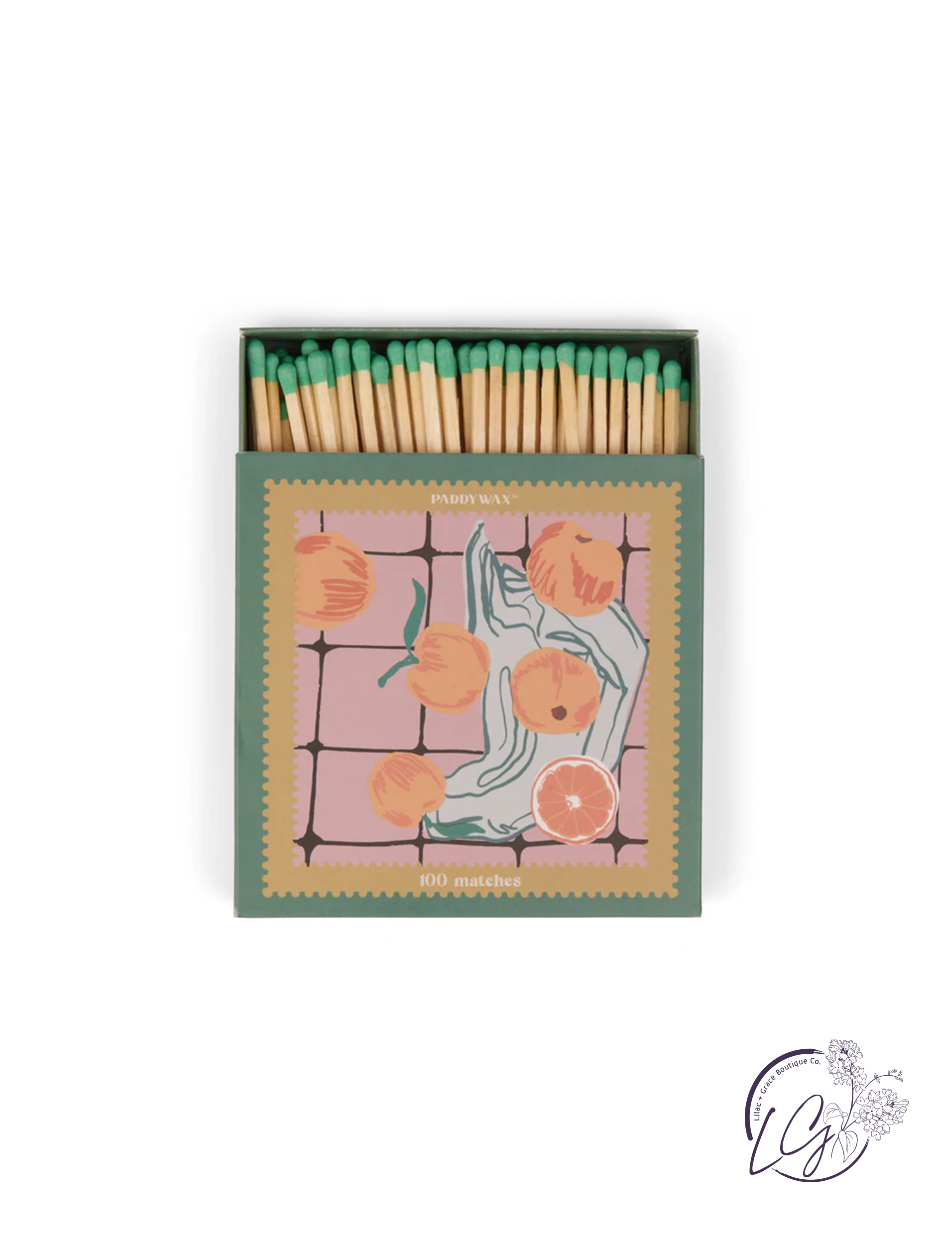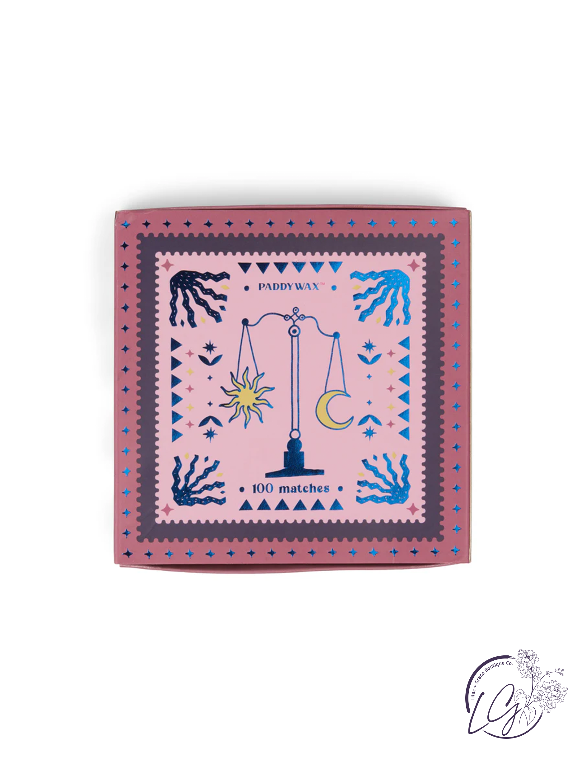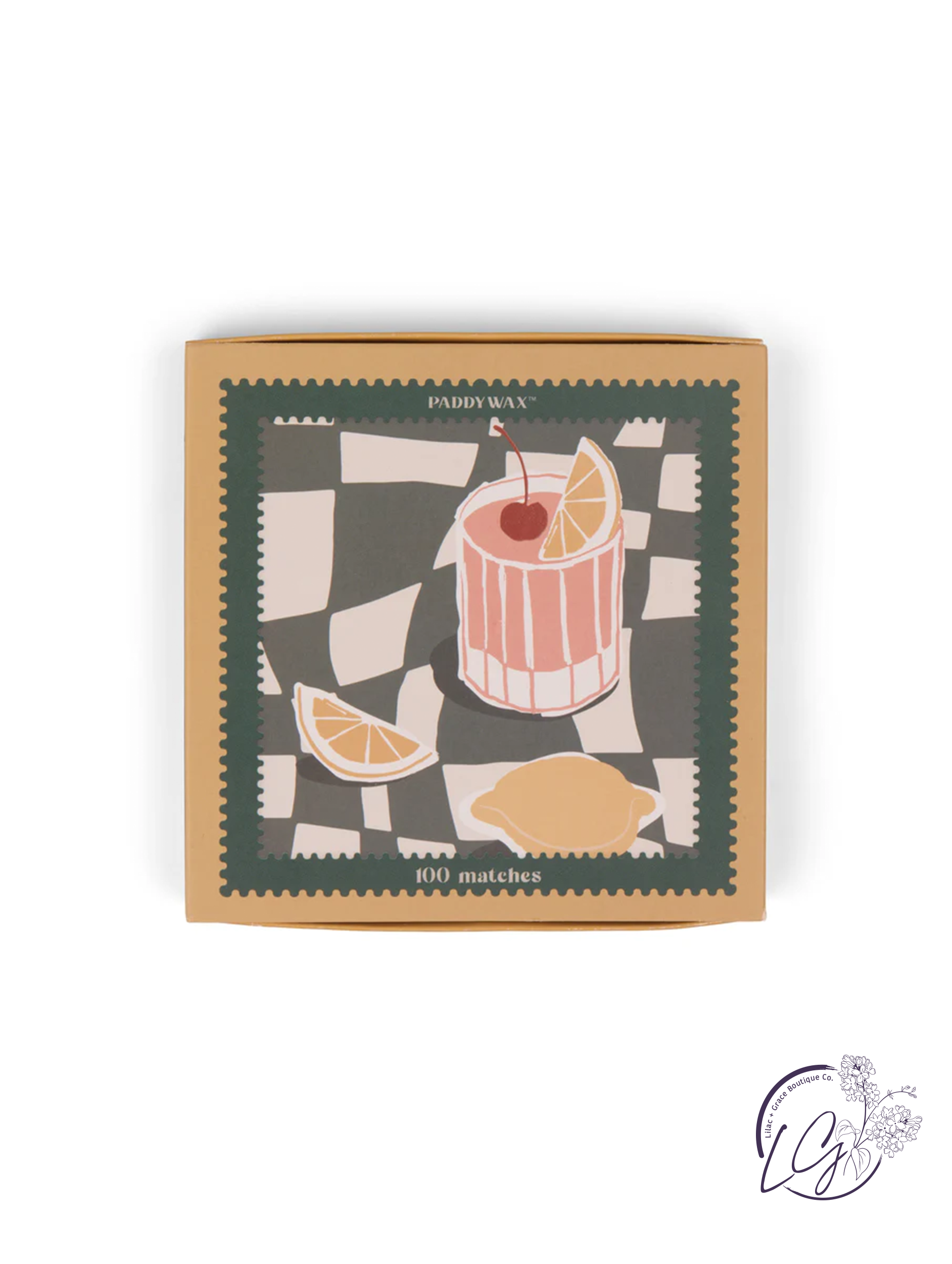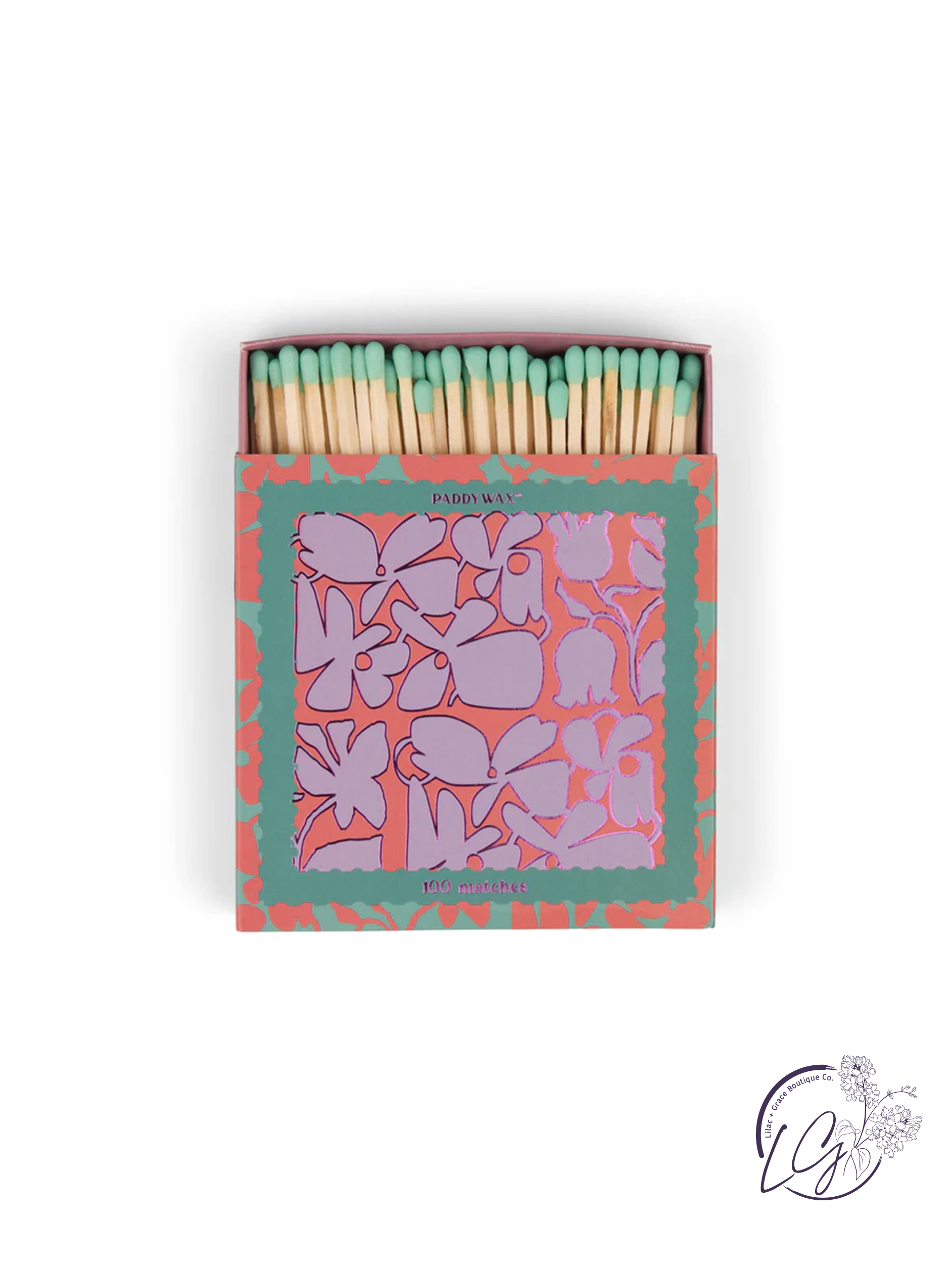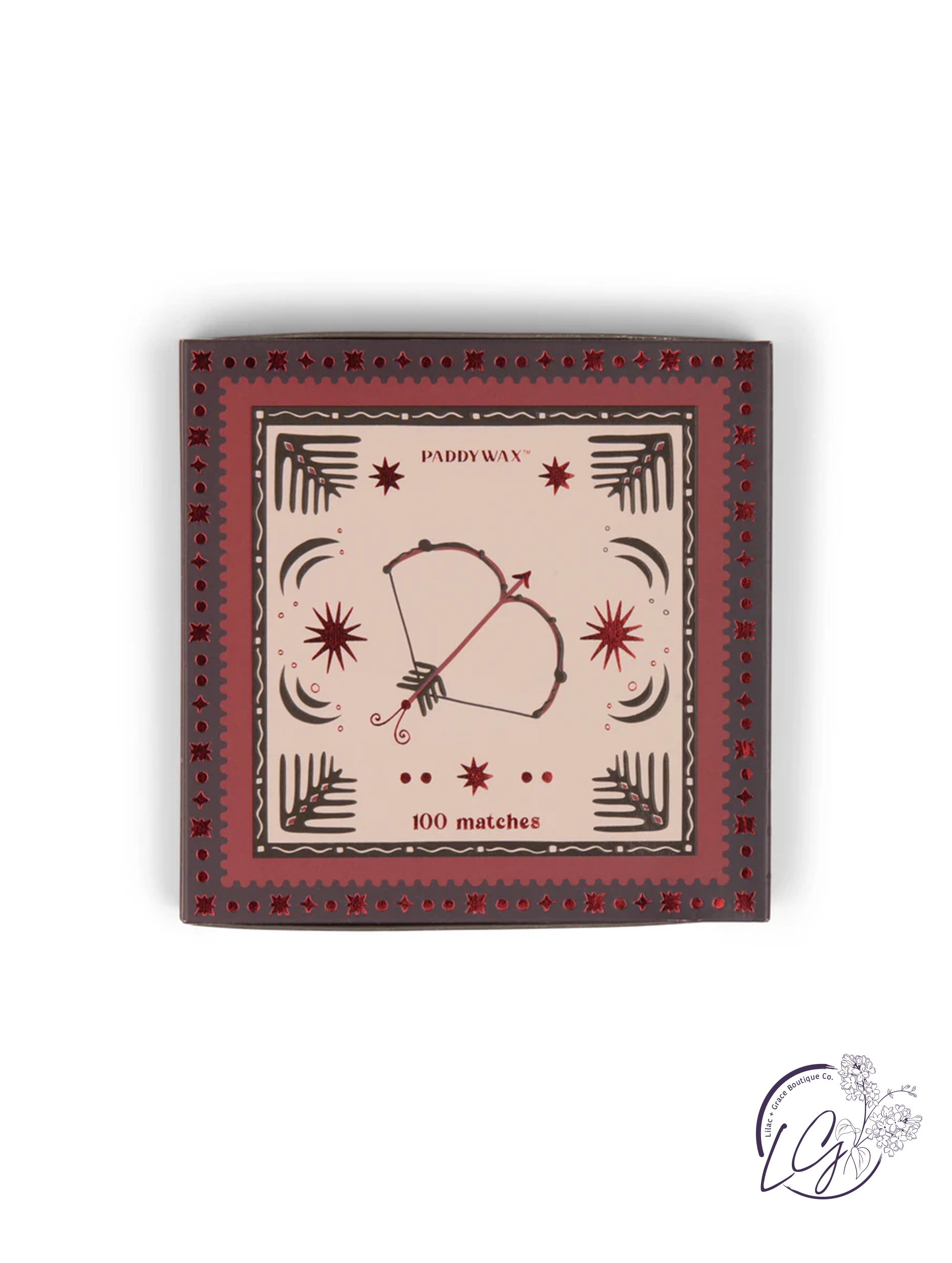 These sets of 100 matches come in a hand illustrated work of art matchbox. Each box features metallic or glossy accents, two strikers, and all 100 match tips are colored to match the design. Jumbo matches are a perfect accessory to gift with any Paddywax candle.