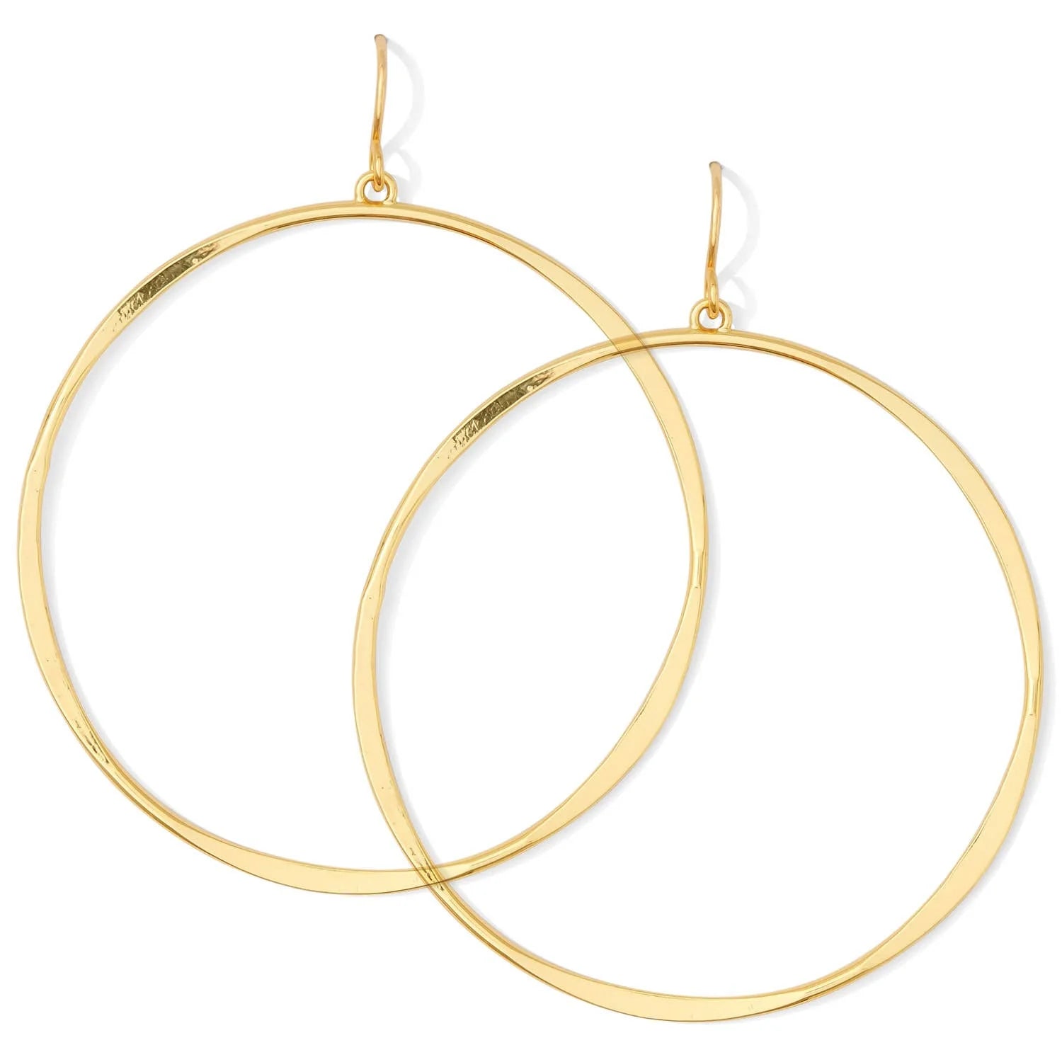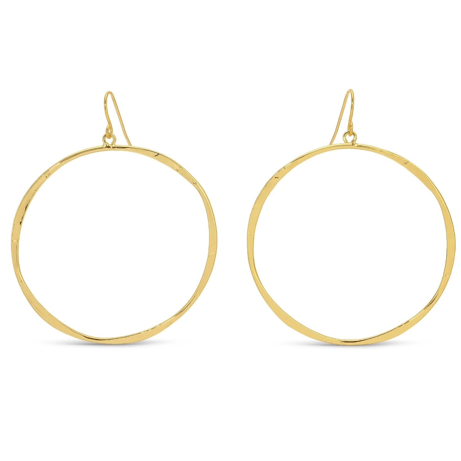 These earrings feature two open circles, lightly hammered for a unique touch. Their length adds a touch of elegance and are fabulous for any occasion.