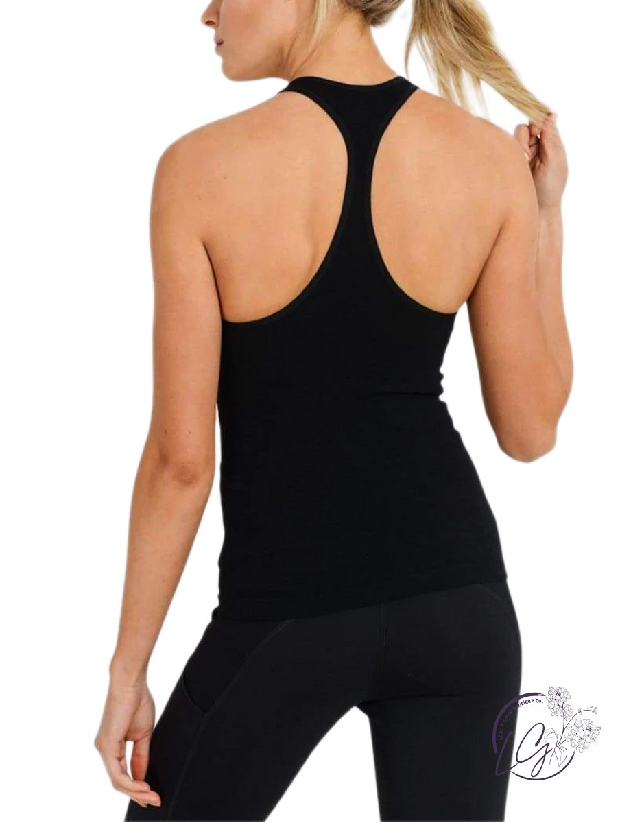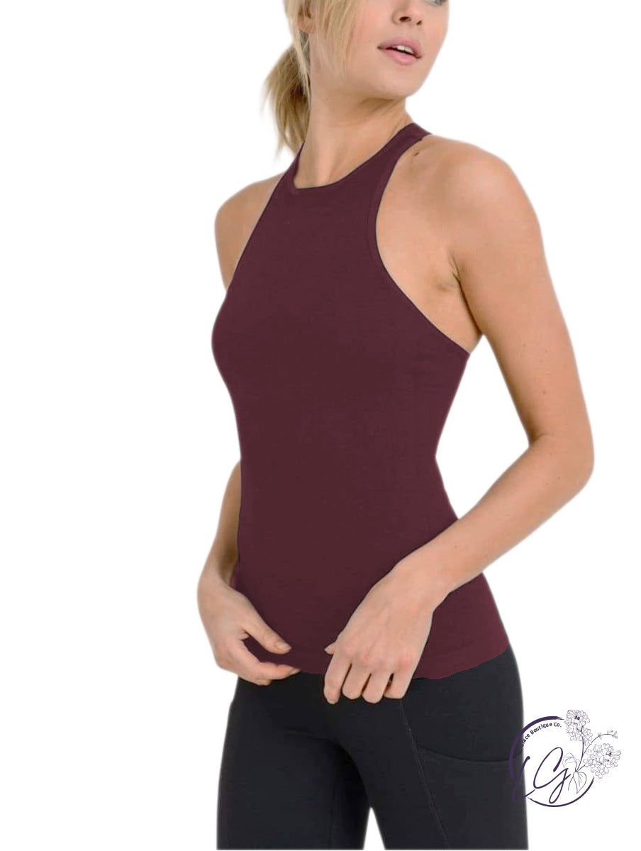 Designed to perfectly hug your curves (and boost your confidence), this tank top is constructed using Ribbed seamless fabric and features a racerback design.