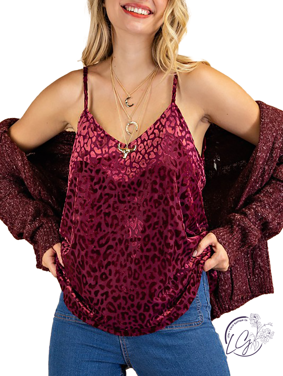 Soft Stretch Burn Out Velvet Animal Print Cami