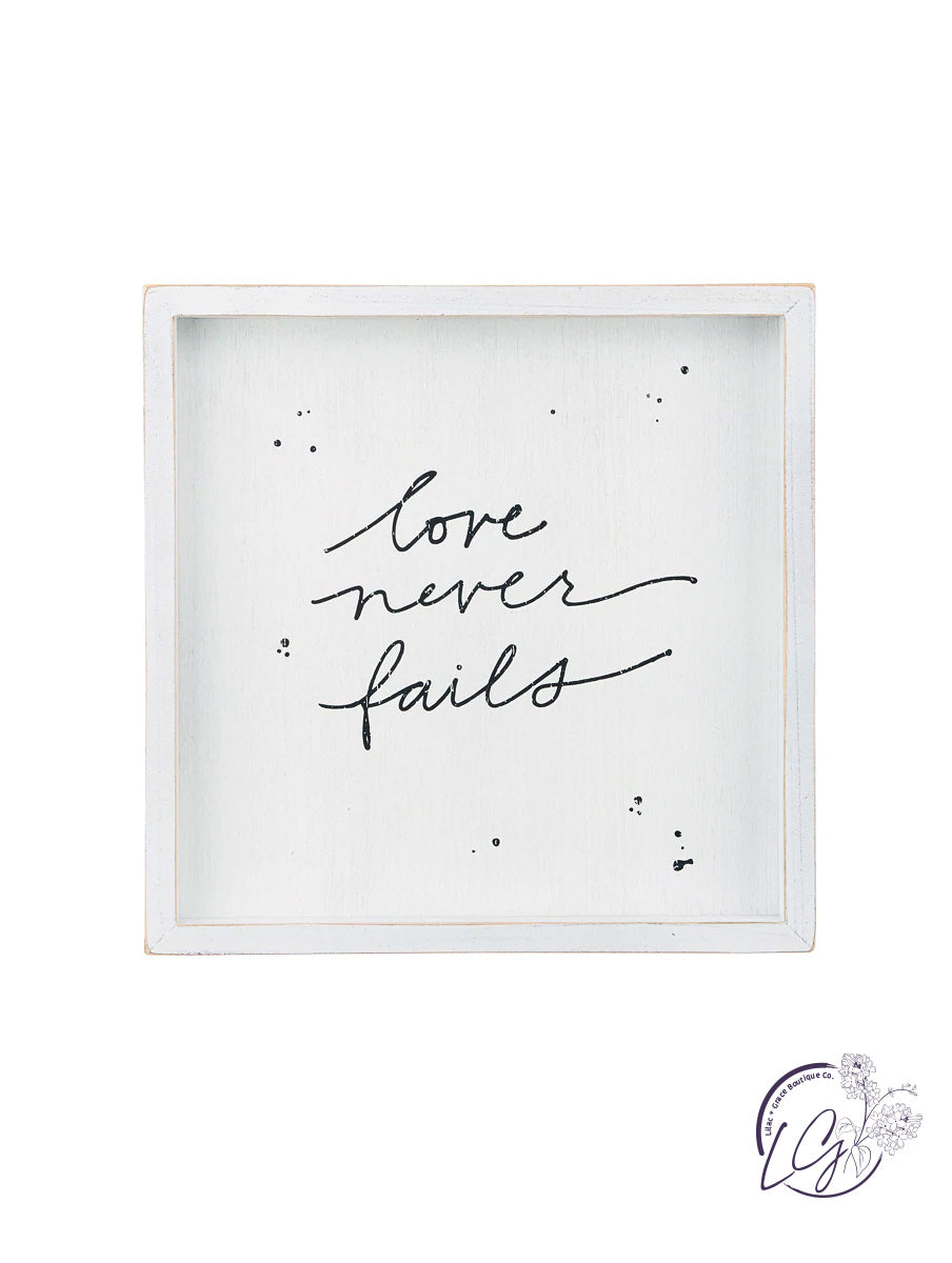 Bring the truth of God's love into your home with this framed board that references the 1 Corinthians 13 scripture on love! Hang it on the walls or stand it on a surface to spread the message of unfailing love for your family and friends!