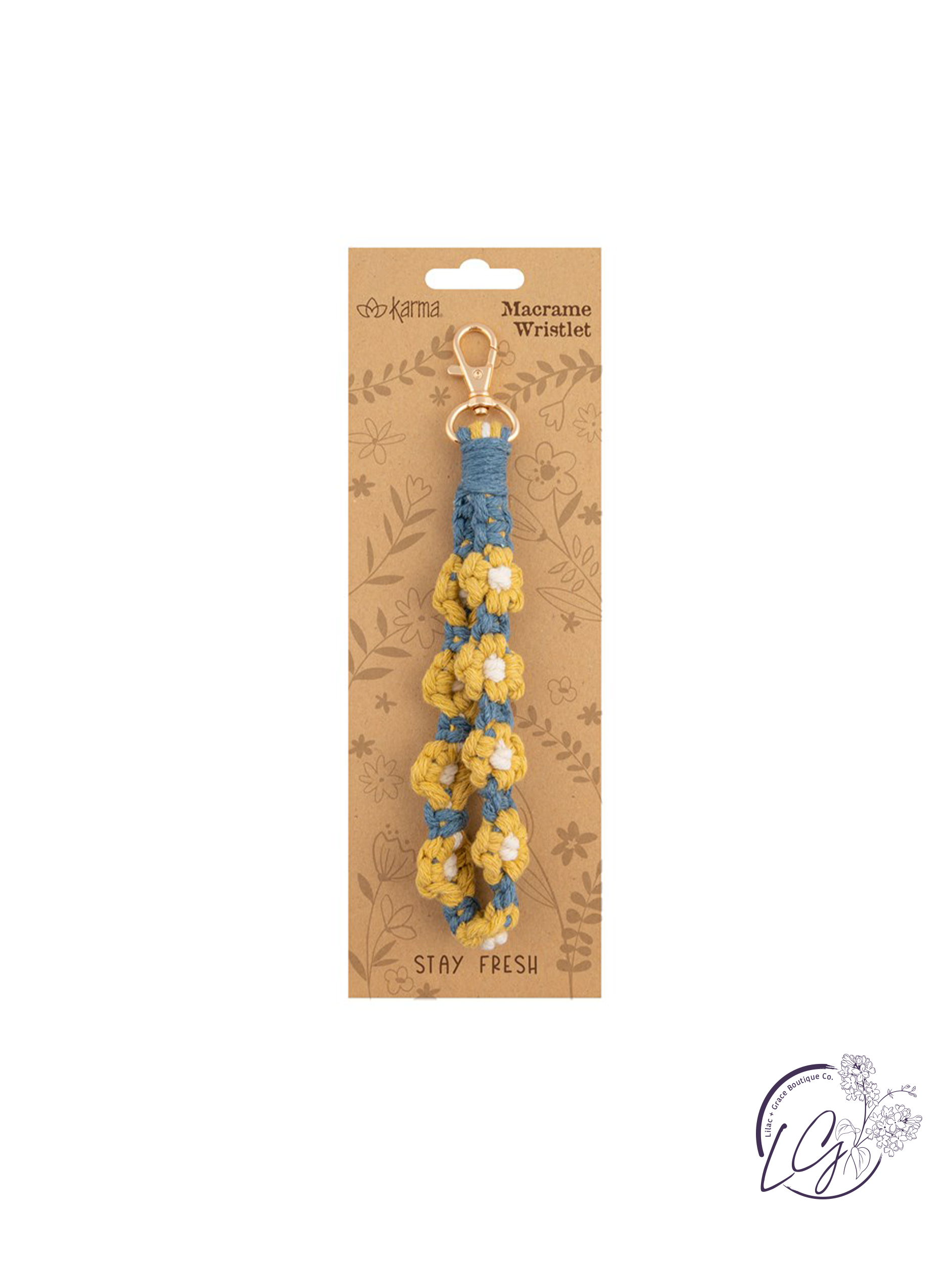 Upgrade your everyday essentials with this charming macramé wristlet, perfect for adding a touch of bohemian flair to your style. Hand made from soft cotton and natural materials, this wristlet not only looks adorable but also promotes sustainability. Whether you attach it to your keychain or your wallet, this versatile accessory is sure to make a statement wherever you go. Say goodbye to boring accessories and hello to effortless style with this Macramé Wristlet.