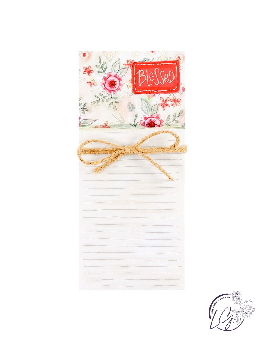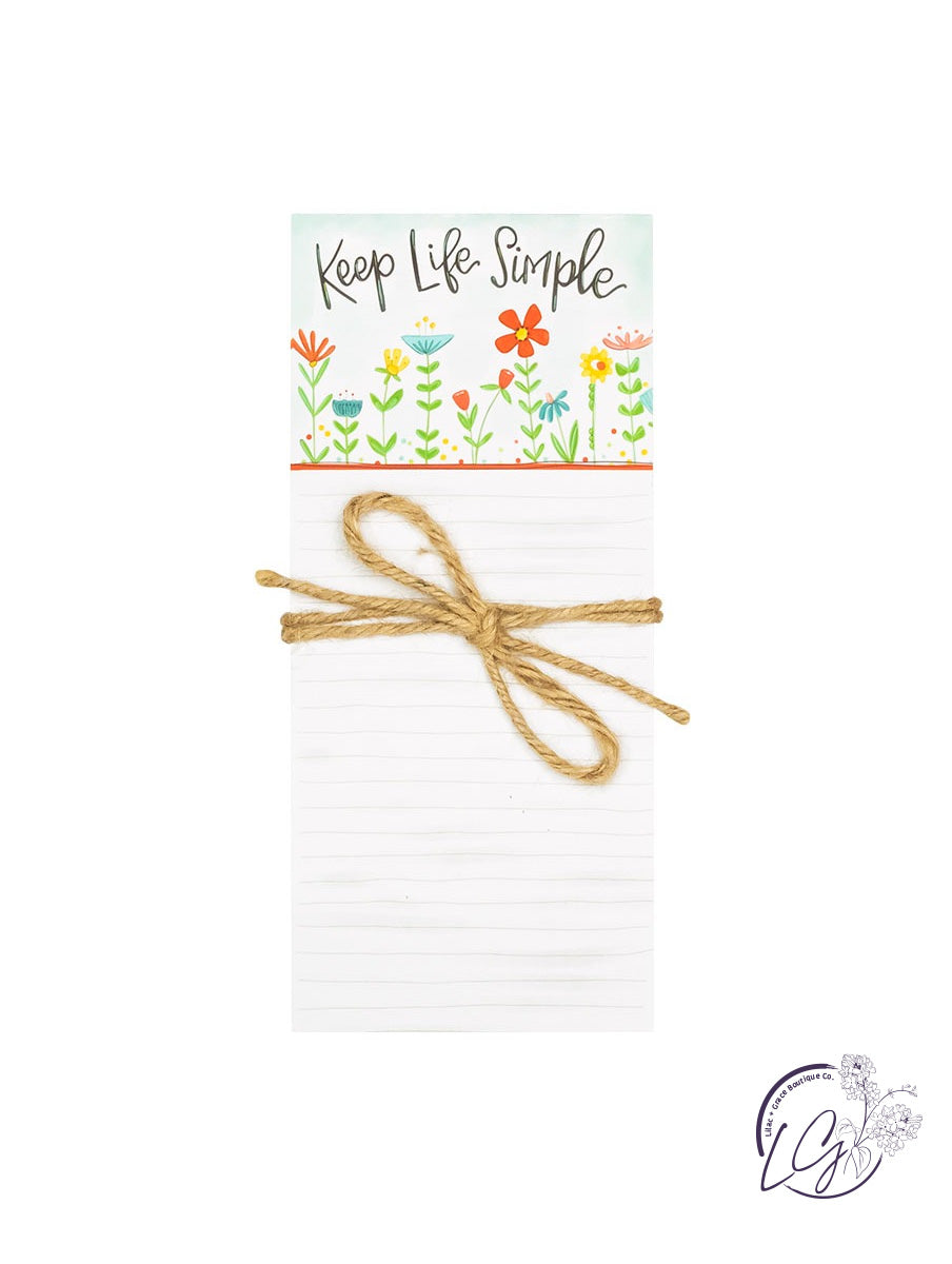A Simple Inspirations colorful and trendy 4″(W) x 9″(H) magnetic list pad wrapped with hand-tied jute.  Featuring artwork by Project Studio. Make your refrigerator, reminder board or calendar beautiful!