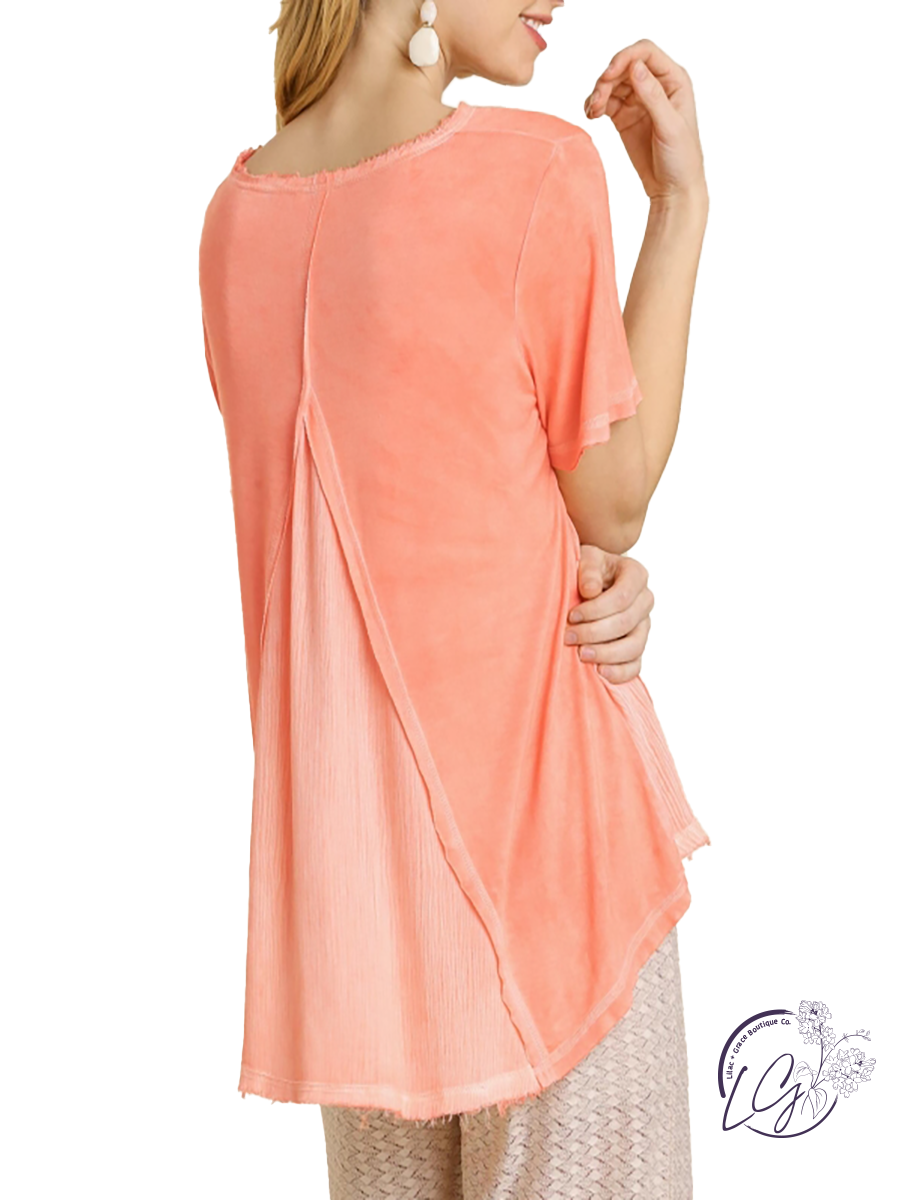 Mineral Washed Round Neck Short Sleeve Top with Raw Hem