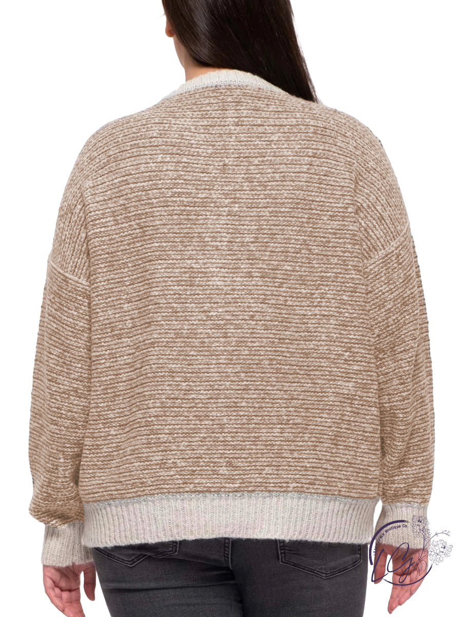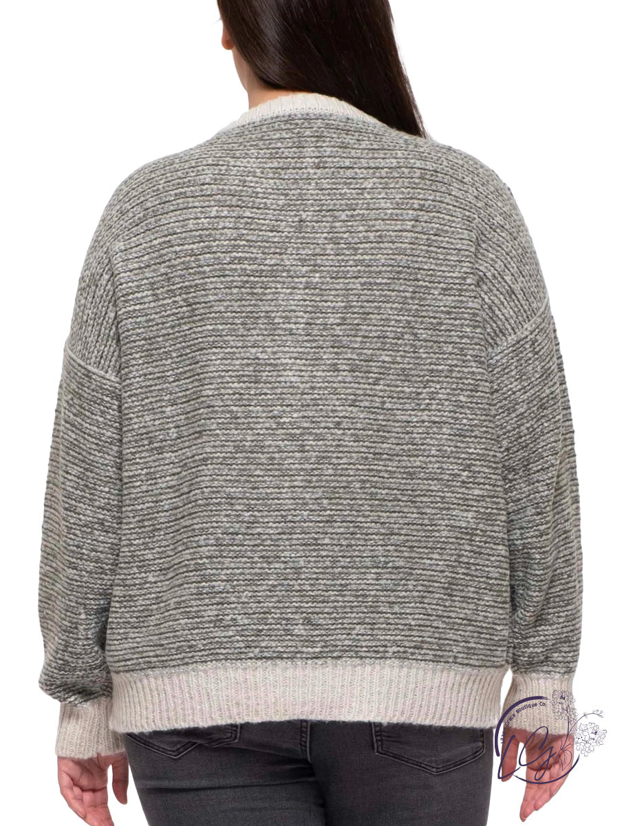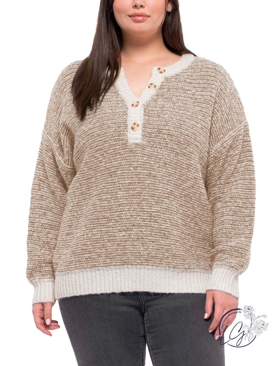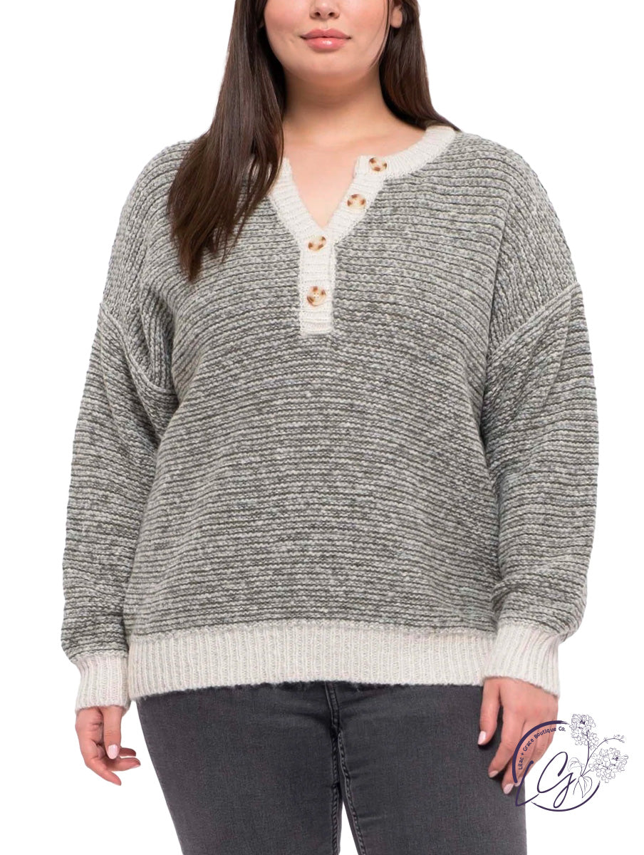 Features: Split Neckline, Marled Knit, button Closure, Long Sleeves