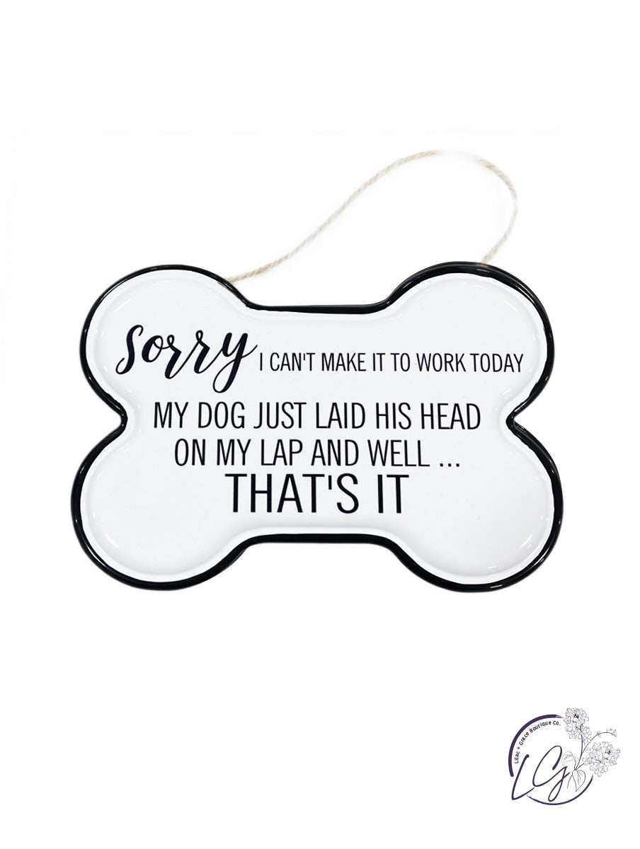 - Full graphic text(sign 1): Sorry i can't make it work today my dog just laid his head on my lap and well... that's it