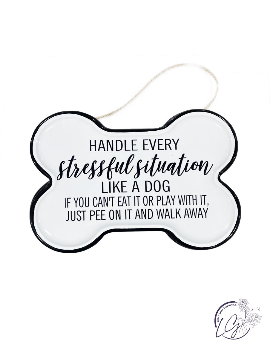 - Full graphic text(sign 2): Handle every stressful situation like a dog if you can't eat it or play with it, just pee on it and walk away